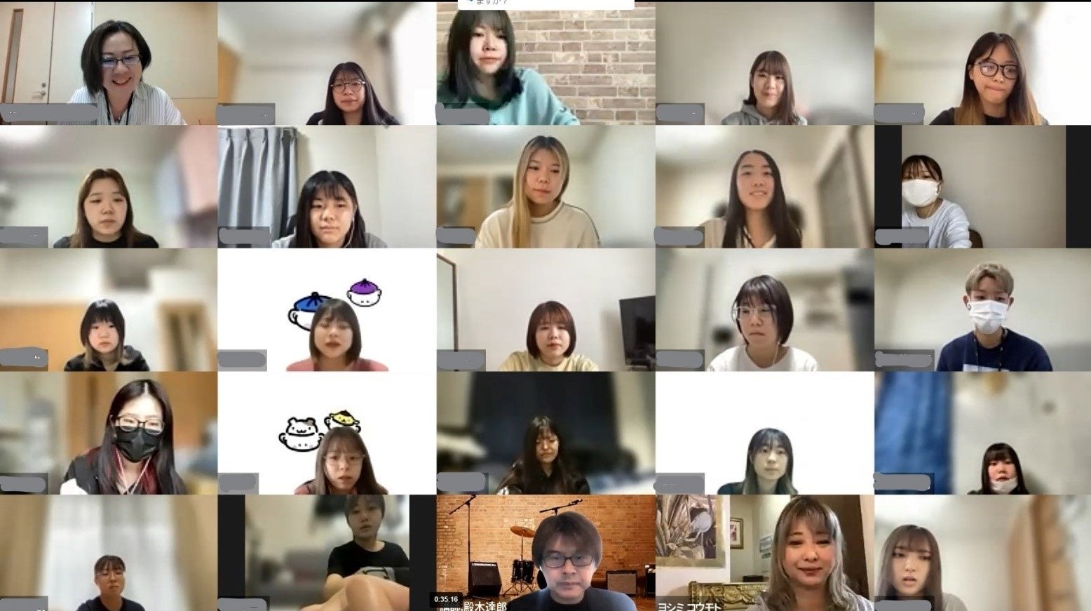 今回は「K-POP総合ゼミ」というK-POPエンタテイメント科K-POPビジネスコース学生の授業の一環として、オンライン講義を新潟と北海道とをweb会議システムで繋ぎ実施。
