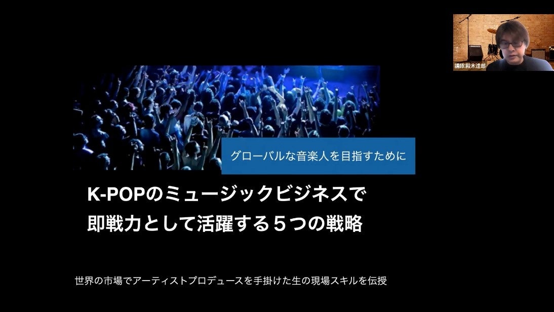 NSGグループの国際音楽・ダンス・エンタテイメント専門学校は、K-POPエンタテイメント科K-POPビジネスコースの在校生へ向けて、世界的エンターテイメントマーケティングをされている殿木達郎氏をお迎えし、5月14日(土)にオンライン授業を実施いたしました。