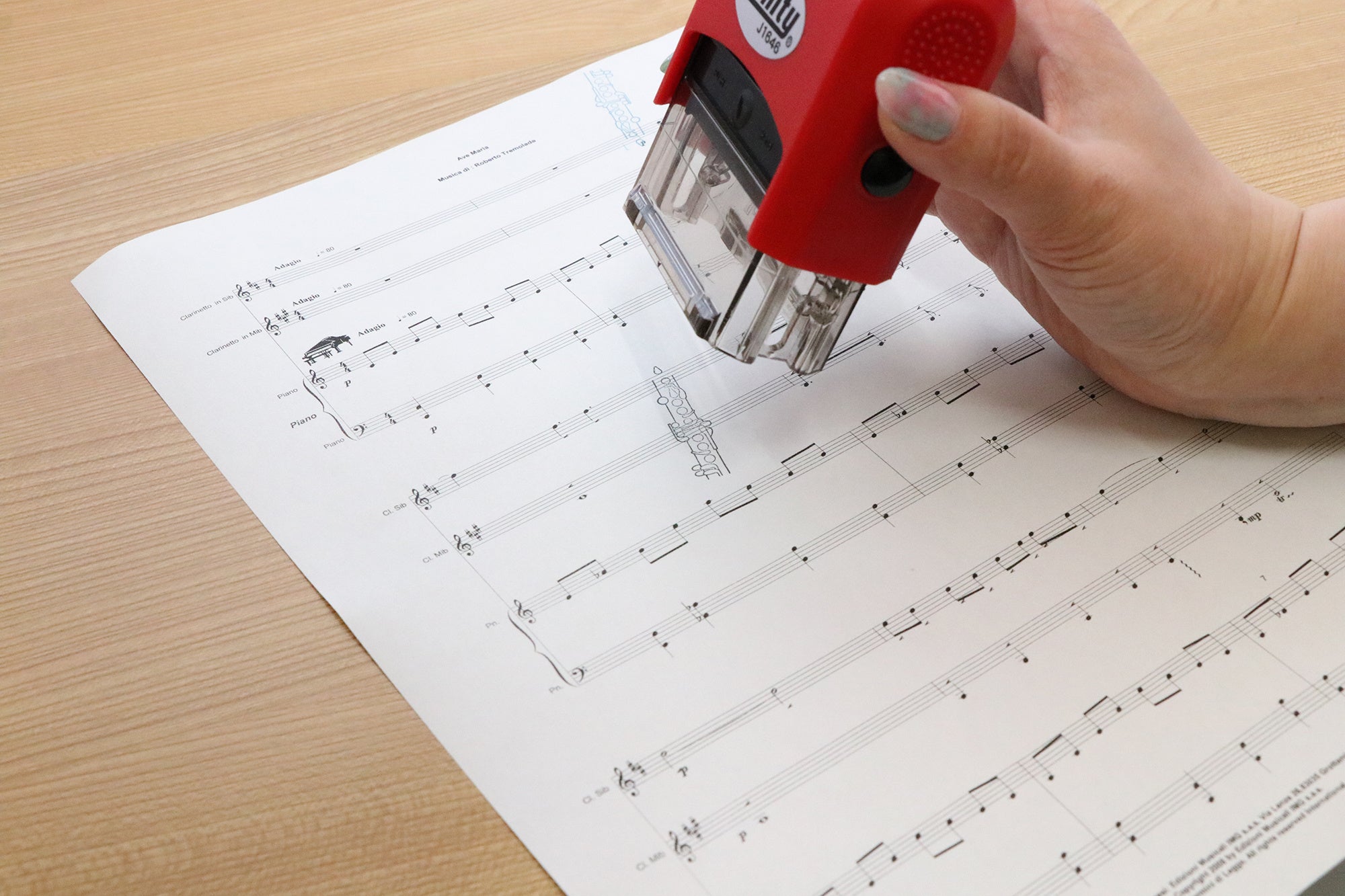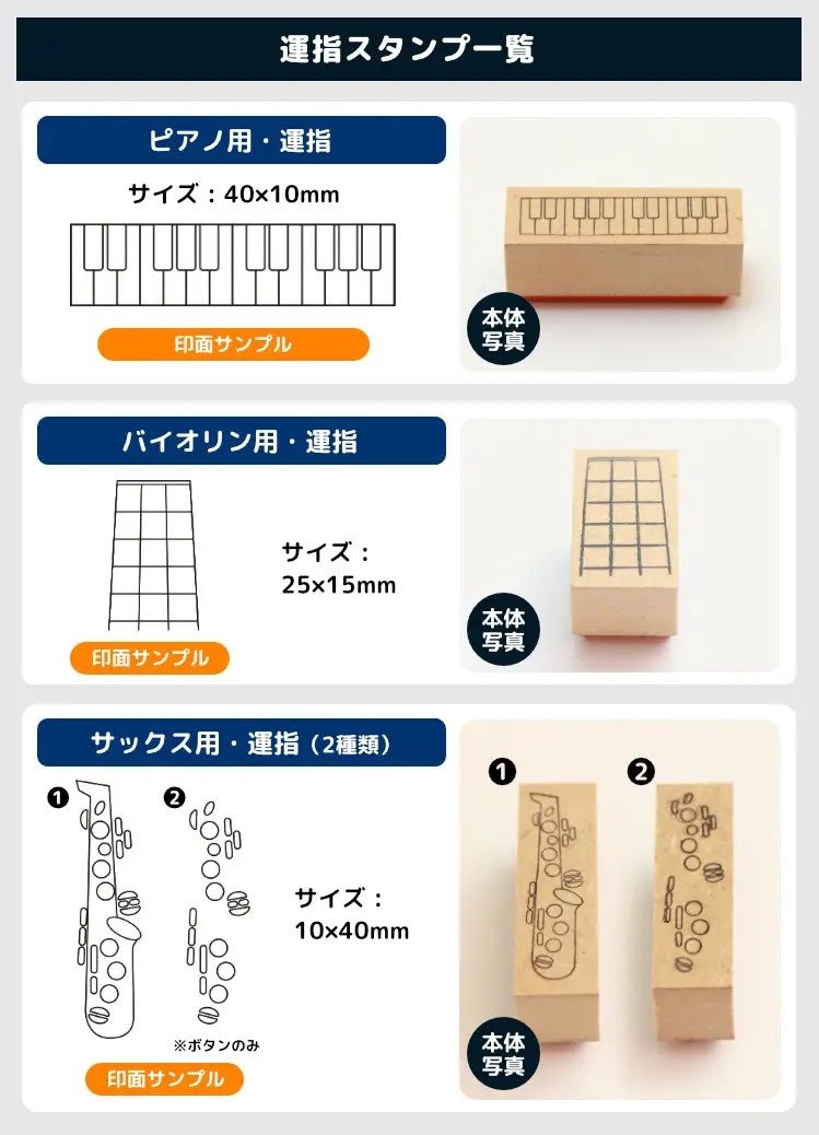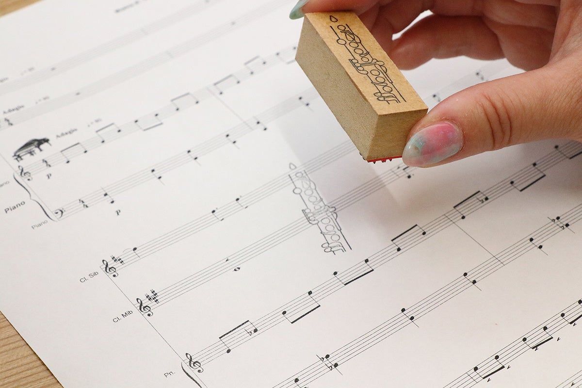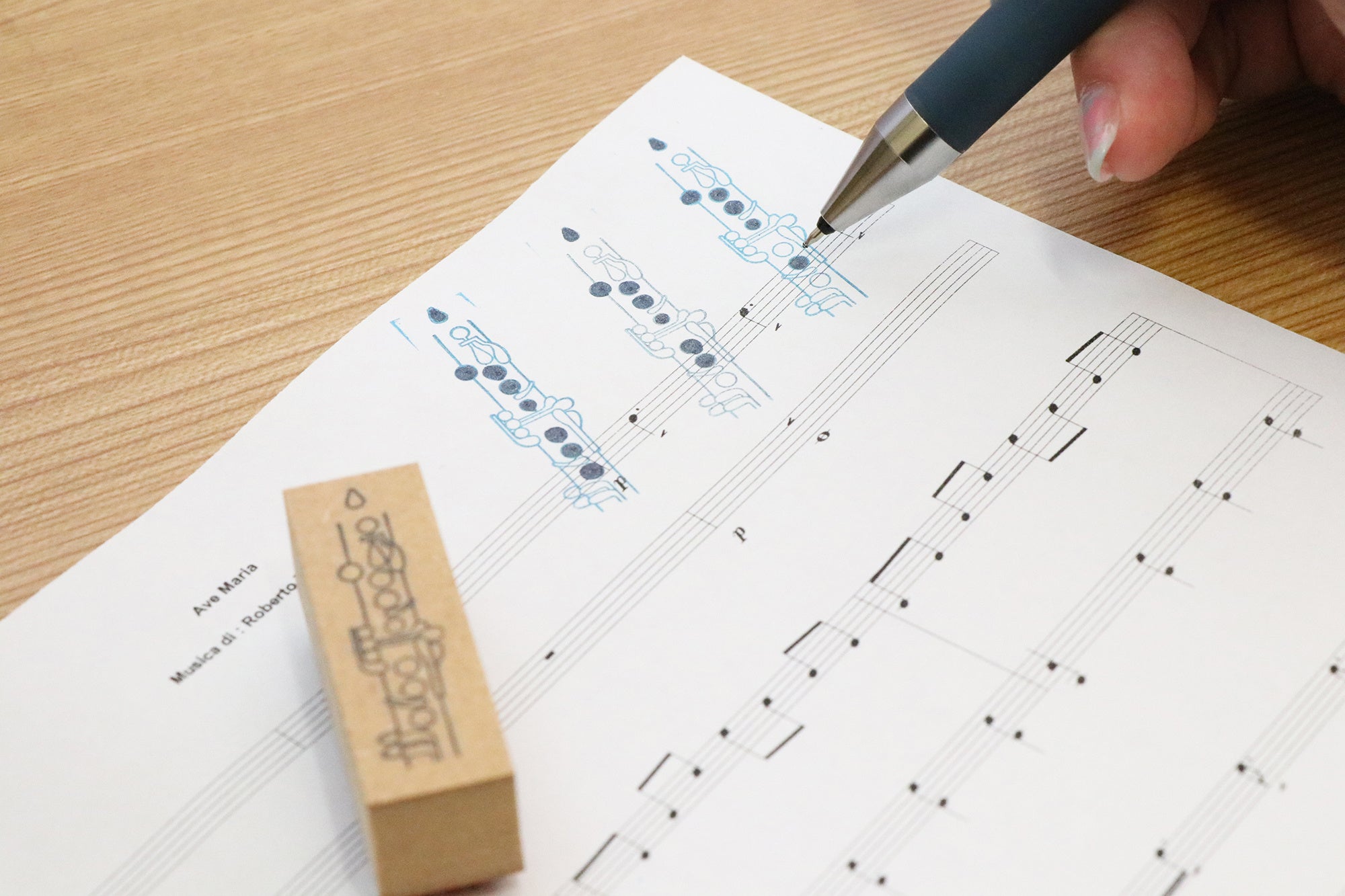 ポン!と押すだけで、楽器の練習時にめんどうな運指図を書き込む手間を省き、効率よく楽器が練習できるミュージシャンのためのはんこ「音楽ずかん 楽器練習スタンプ」。熟練者やプロ、講師の方でも作曲時の運指を控えるのに活躍します。
