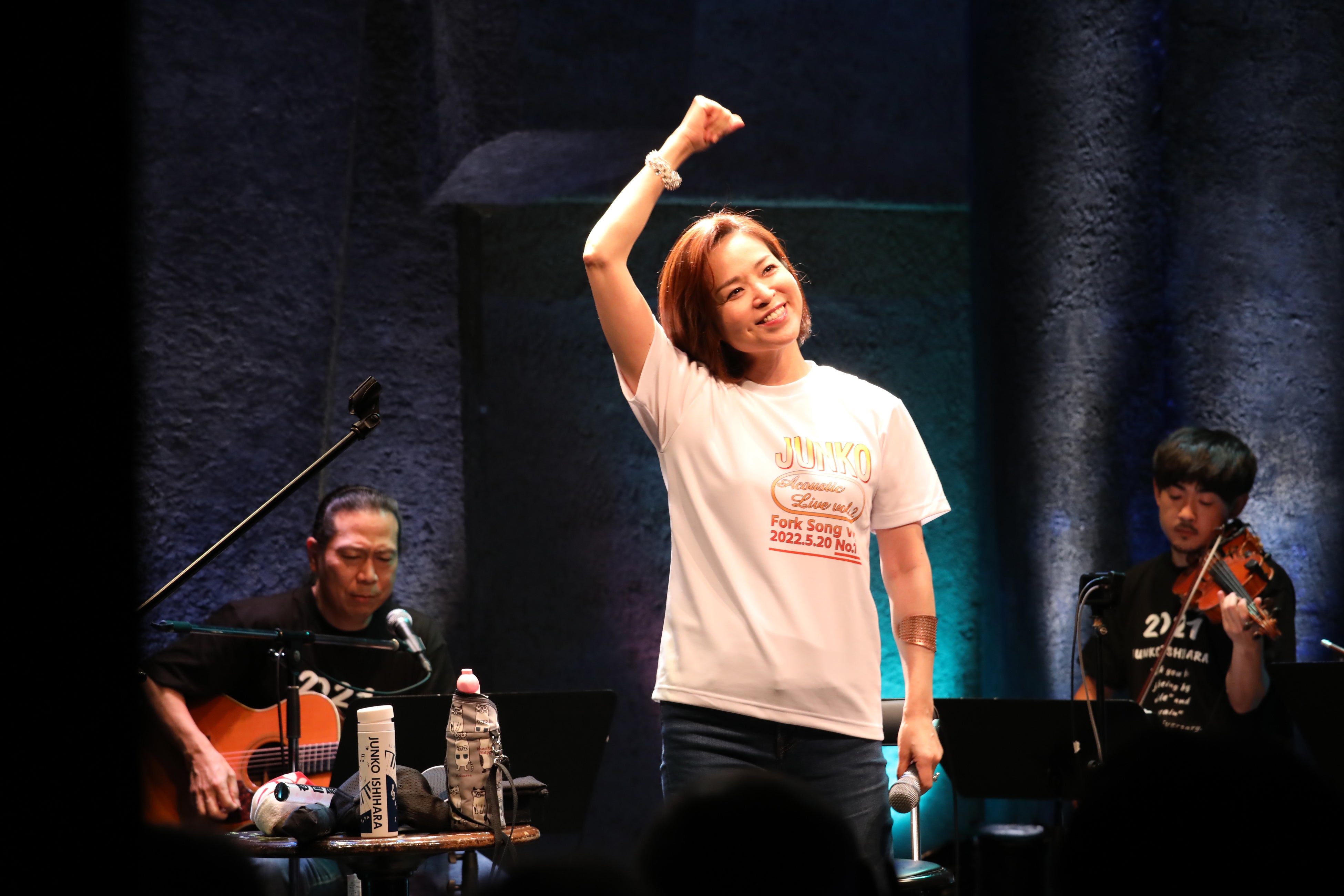 そして、ラストは自身が大好きな曲で、人生に大きな勇気と希望を与えてくれた松山千春の「大空と大地の中で」。‘77年に発表され、フォークソングのスタンダードとなったこの歌を、今回のライブの最後に届けるメッセージとして悠然とおおらかに歌い上げ、拍手喝采の中、「本当にありがとうございました!」と笑顔で手を振り約80分にわたるステージに幕を下ろした。