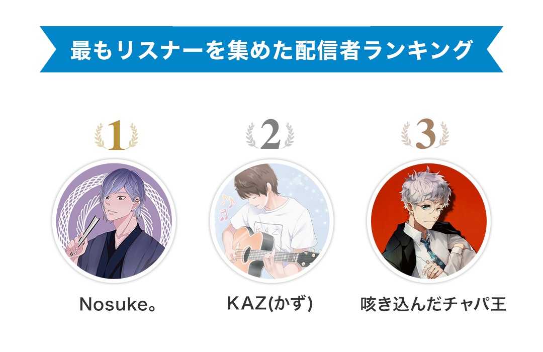 見事総合1位に輝いたのは、バラードからロックナンバーまで幅広いジャンルの弾き語りを披露した「KAZ(かず)」。花束を集めた配信者ランキングで1位に輝き、リスナーを集めた配信者ランキングでも2位を獲得。見事総合1位を勝ち取りました。配信では、リスナーみんながお決まりの絵文字を使って応援したりと一体感のあるラジオ配信ラウンジが開催されました。