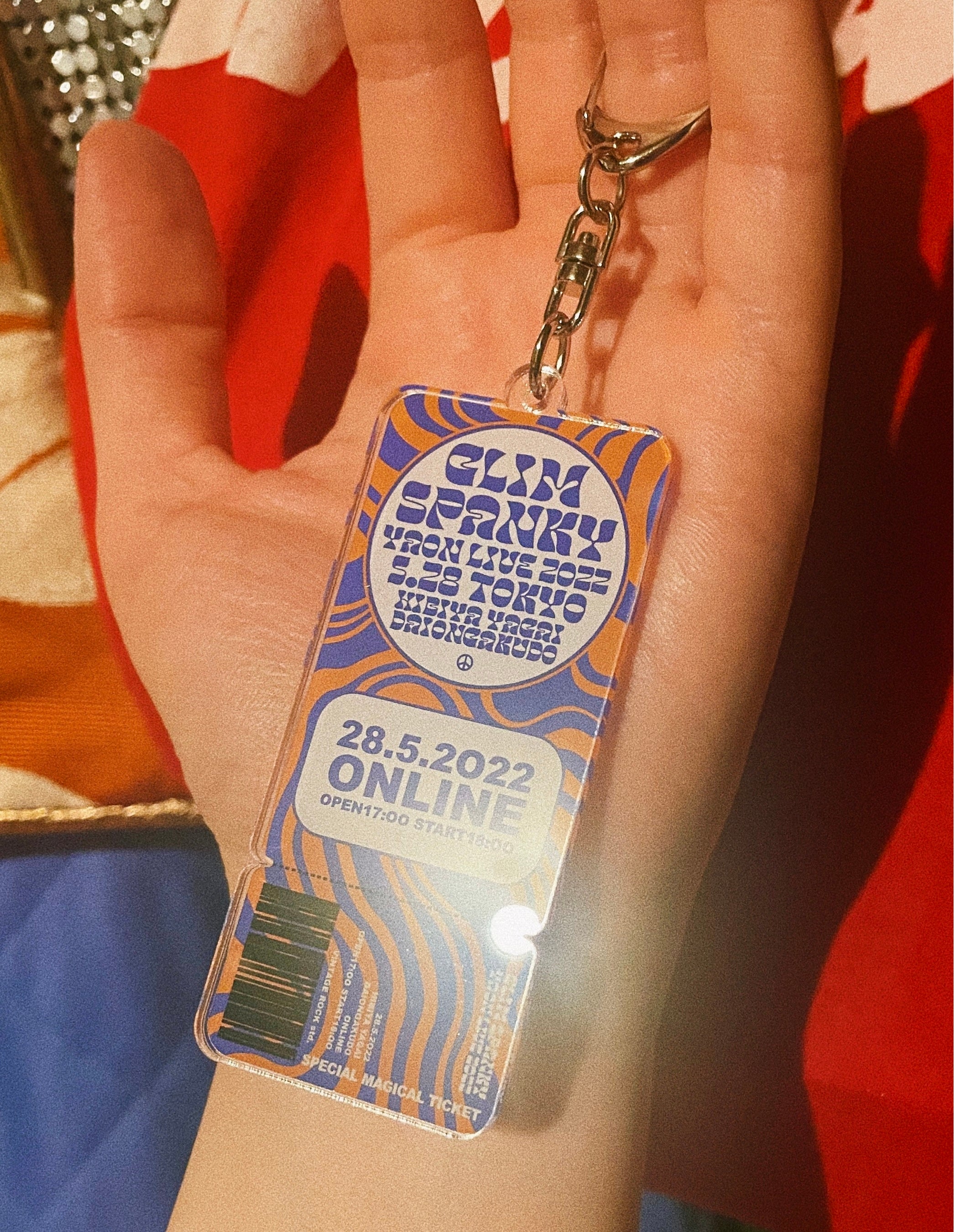 「GLIM SPANKY 野音ライブ 2022」開催記念、松尾レミデザインのチケット風アクリルキーホルダー。