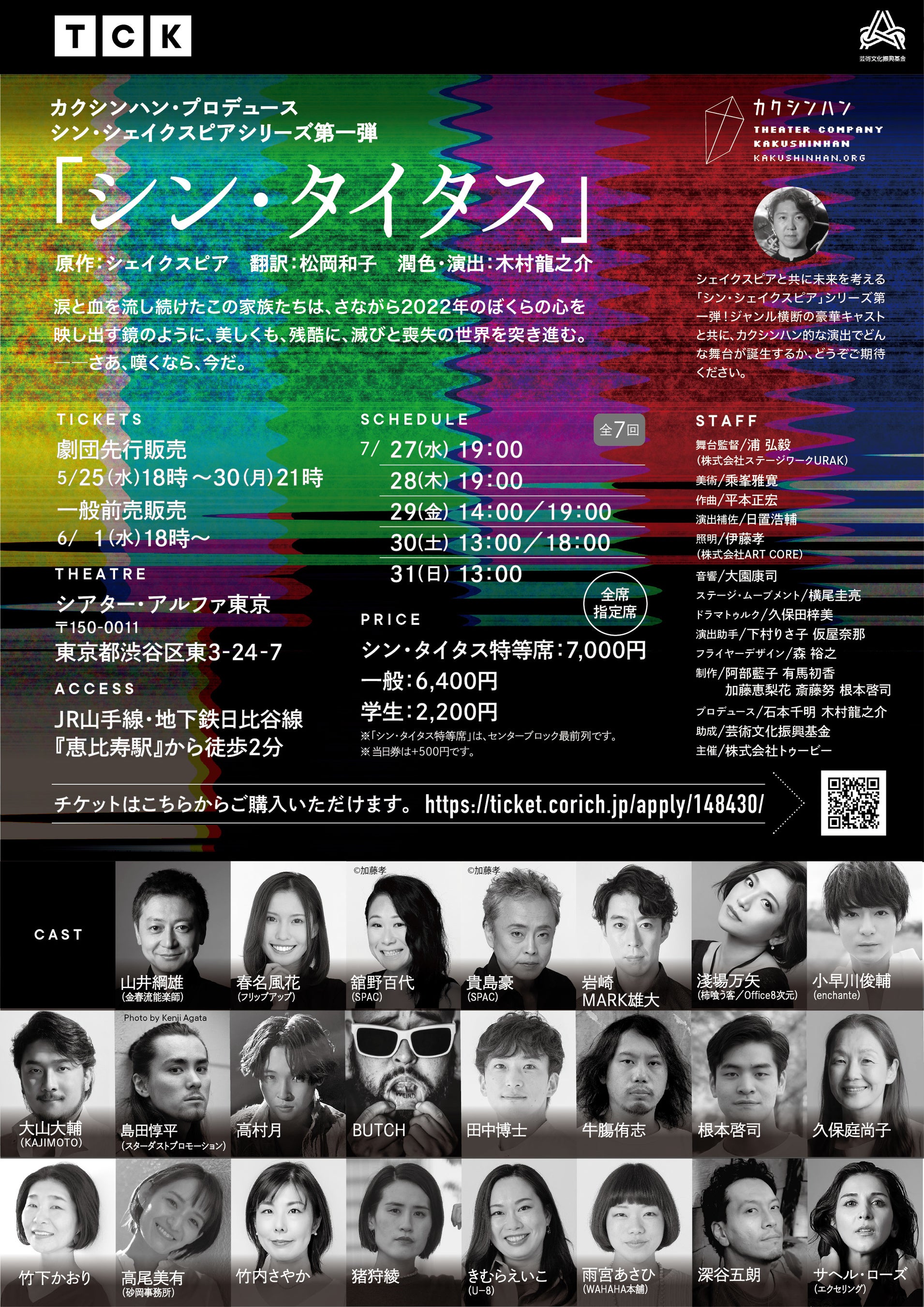 シェイクスピアと共に未来を考える「シン・シェイクスピア」シリーズ第一弾!ジャンル横断の豪華キャストと共に、カクシンハン的な演出でどんな舞台が誕生するか、どうぞご期待ください。