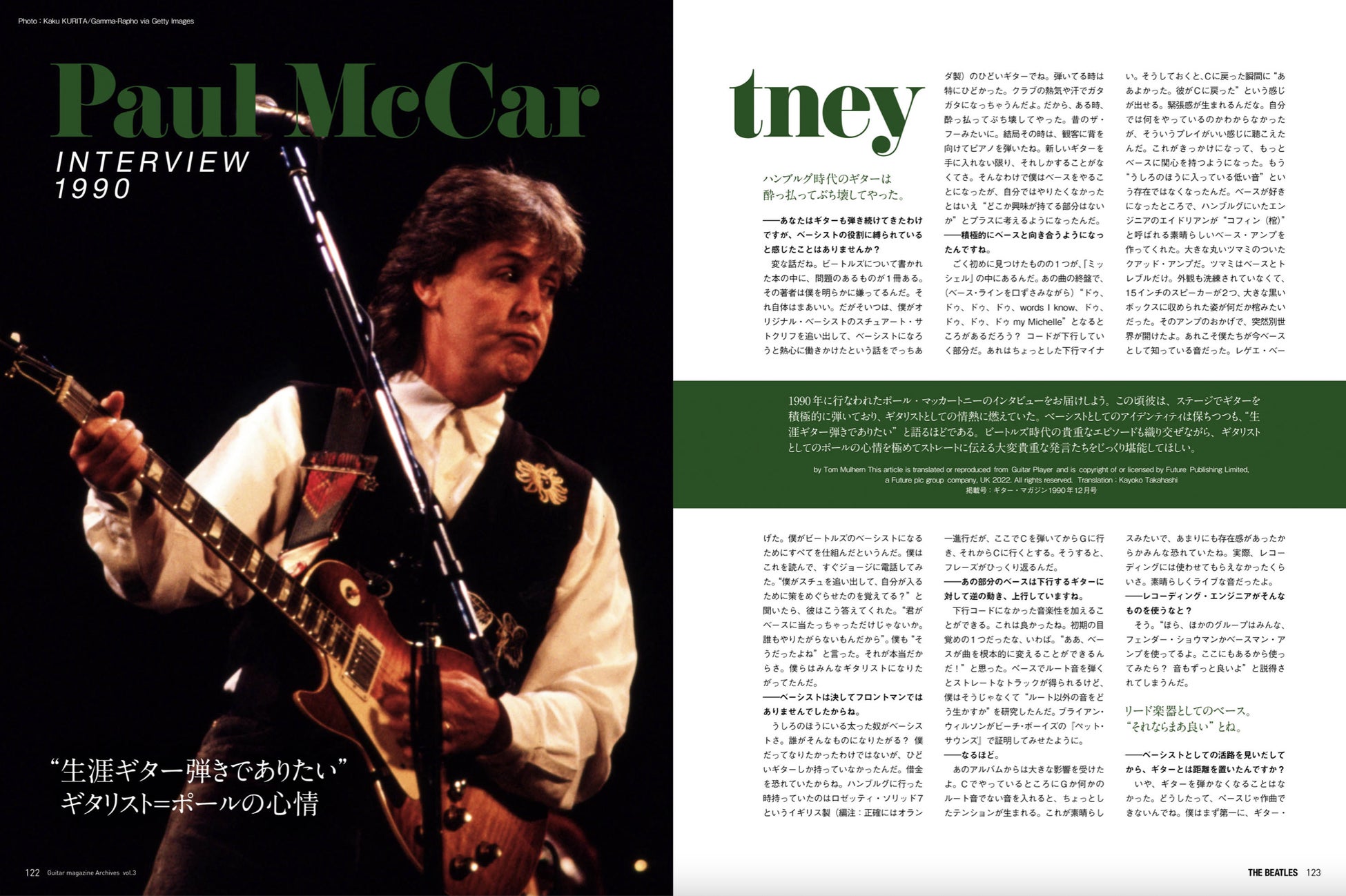 インタビューはジョージ・ハリスンの過去インタビューを2本(87年、92年)、ポール・マッカートニーを1本掲載(90年)。どれもギタリストとしての立場でビートルズ時代を語った、珍しいインタビューとなります。