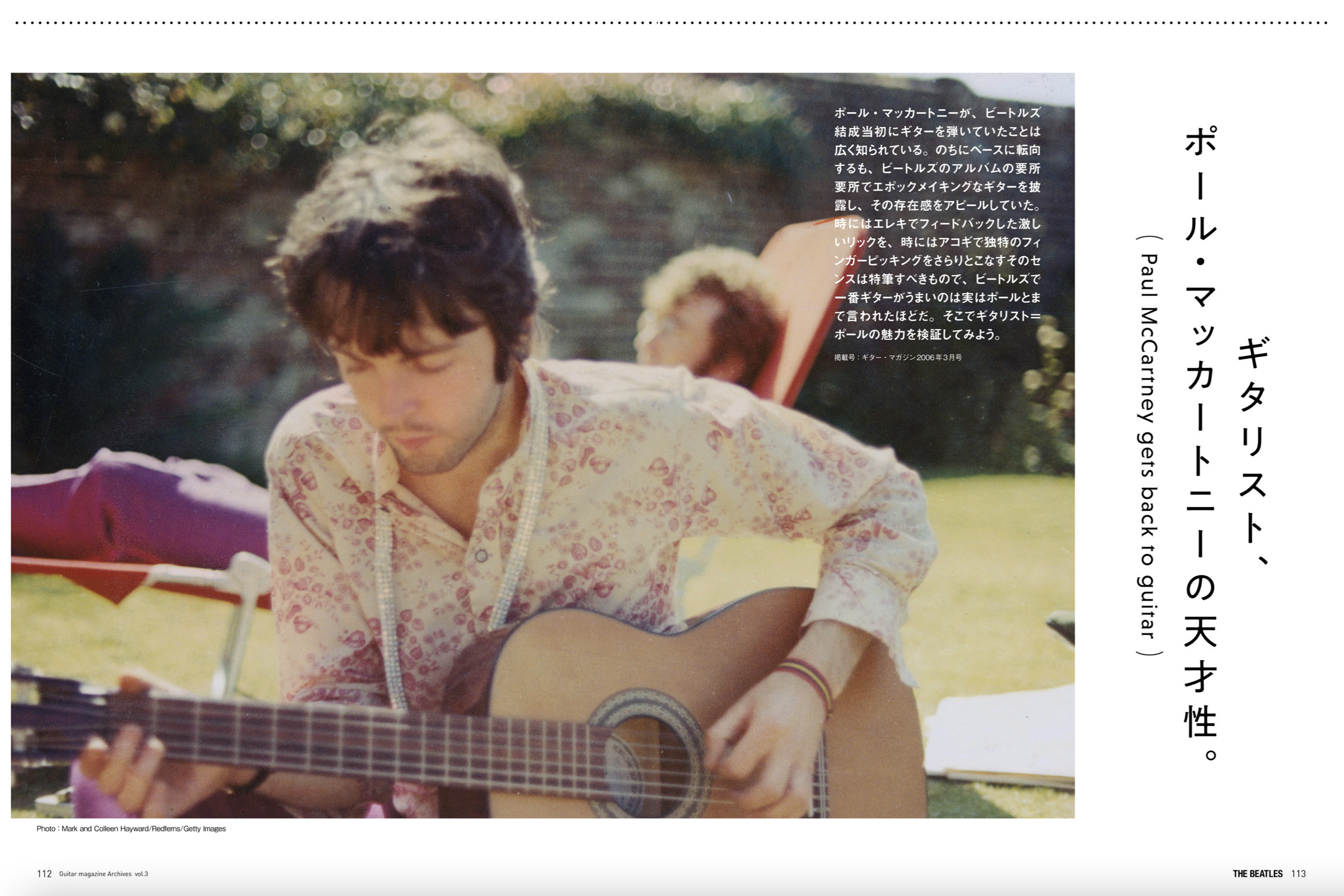 インタビューはジョージ・ハリスンの過去インタビューを2本(87年、92年)、ポール・マッカートニーを1本掲載(90年)。どれもギタリストとしての立場でビートルズ時代を語った、珍しいインタビューとなります。
