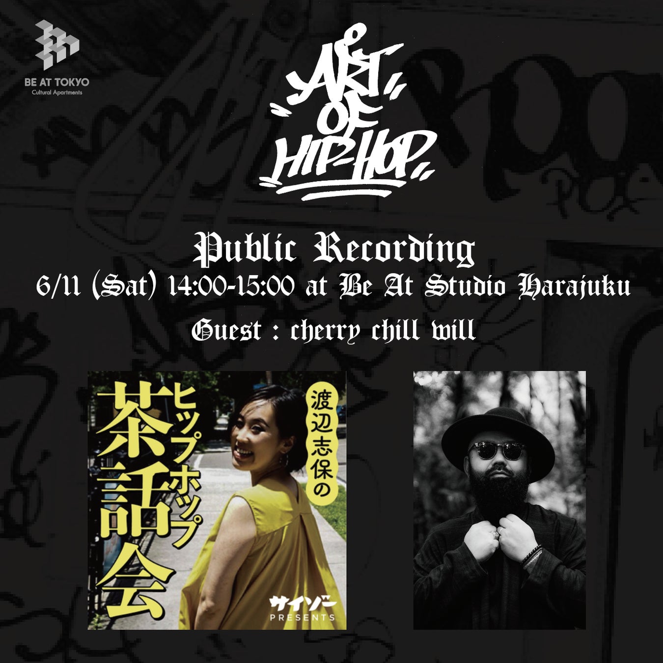 音楽ライター・渡辺志保がメインパーソナリティを務める「やすらぎのティータイム」に刺激を与えるポッドキャスト番組『渡辺志保のヒップホップ茶話会』。今回は特別ゲストとして、写真家のcherry chill will氏をお招きし、14:00~15:00にて公開収録を行う。事前に番組宛に質問をくださった方の中から抽選で番組特製湯呑みをプレゼント。また、ご来場くださった皆様には番組特製ステッカーを進呈します。観覧無料。