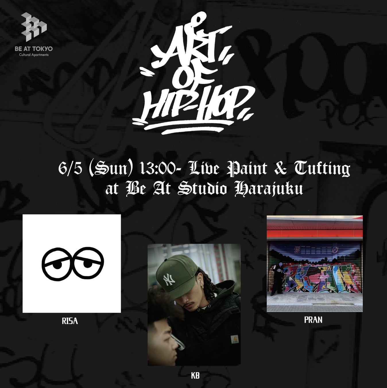 6/5( 日)には会場に設置された4mを超える巨大な白壁を使用したミューラルアートを制作。BE AT STUDIO HARAJUKUにグラフィティ が完成する瞬間を見逃すなかれ。参加アーティストは、PRANとKBの2名。ライブペイントで描かれる臨場感をぜひお楽しみください。