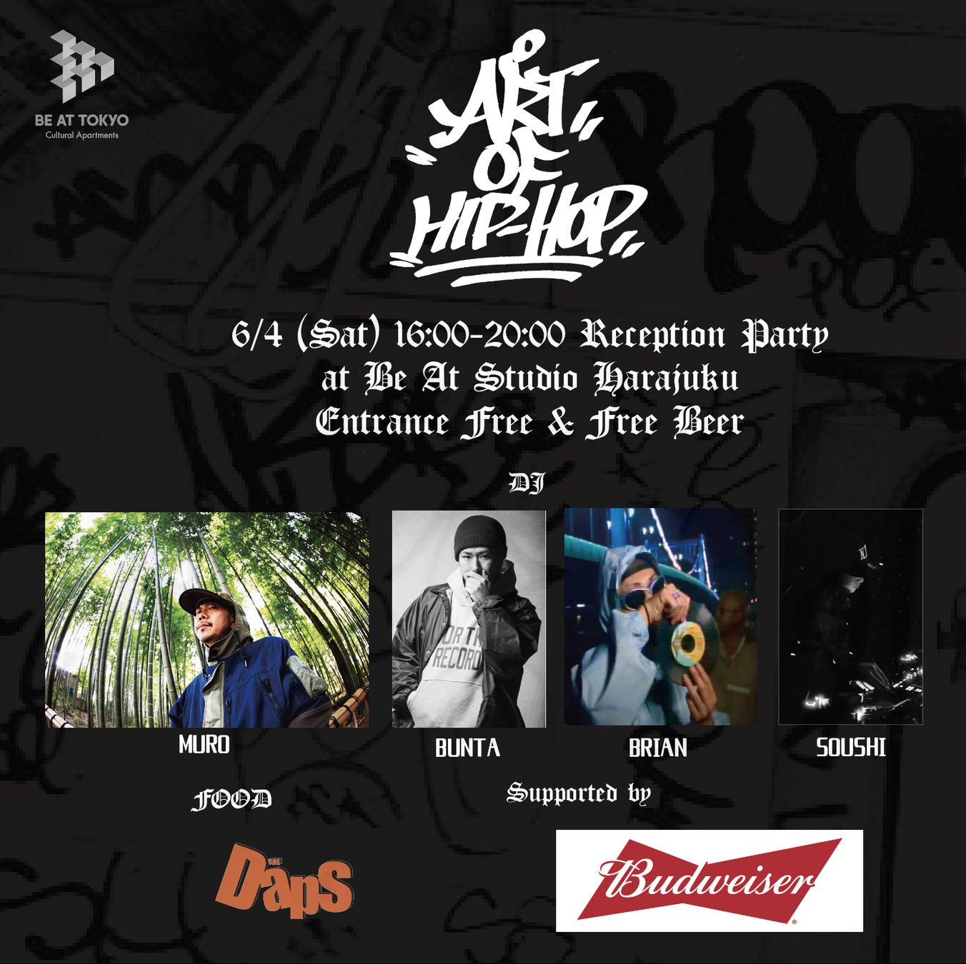 6/4(土) 16:00~20:00には、「ART OF HIP HOP」の開催を祝し、レセプションパーティーを行う。