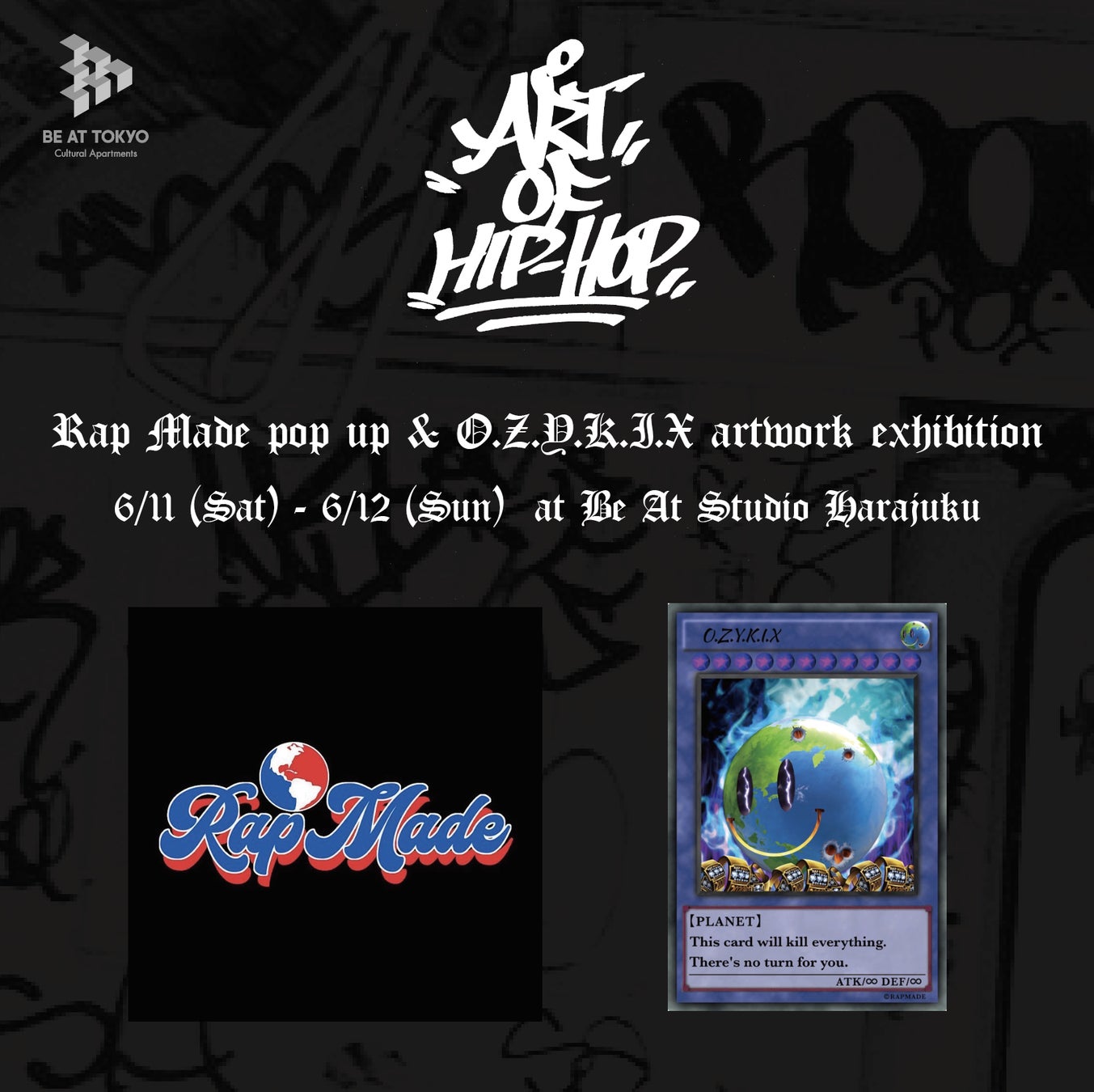 ニート東京の公式スタンプや、AK-69のライブグッズを手掛けるなど、今勢いに乗るアーティストO.Z.Y.K.I.Xが手掛けるブランド「RAP MADE」のPOP UP SHOPを6/11(土)、12(日)の2日間開催する。大盛況のまま終了した大阪でのイベントに続き、東京では初めての開催となる