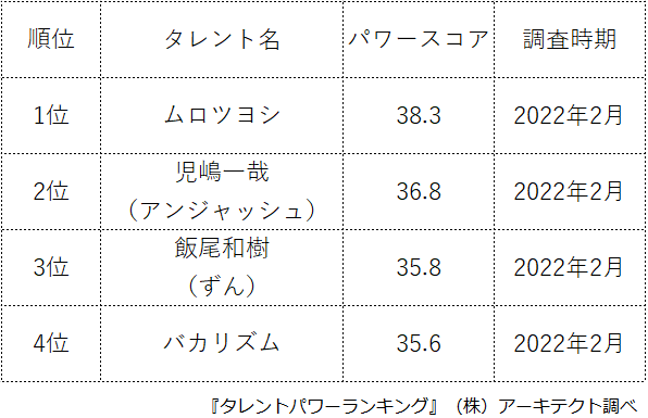 株式会社アーキテクトが実施しているタレントパワー定期調査から、2022年2月度調査のデータを使用。