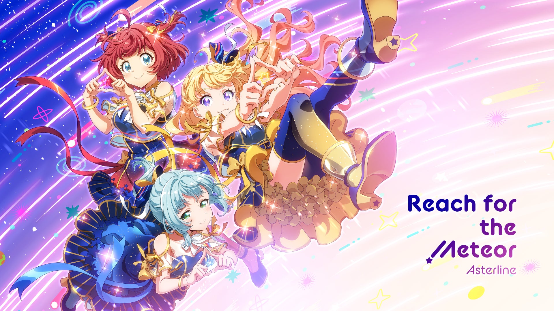 4月26日(火)にデビュー曲、5月6日(金)に結成エピソードが公開されたばかりの新ユニット『Asterline』の新曲「Reach for the Meteor(リーチ フォー ザ ミーティア)」が、5月24日(火) 16:30の定期メンテナンス終了後よりゲーム内にて先行リリースされます。作詞は「前田甘露(マエダカンロ)」氏、作曲は「三浦博健(ミウラヒロタケ)」氏。物語の始まりに揺れ動く想いを、キュートなエレクトリックサウンドに乗せた楽曲となっておりますので、ぜひゲーム内でお楽しみください。