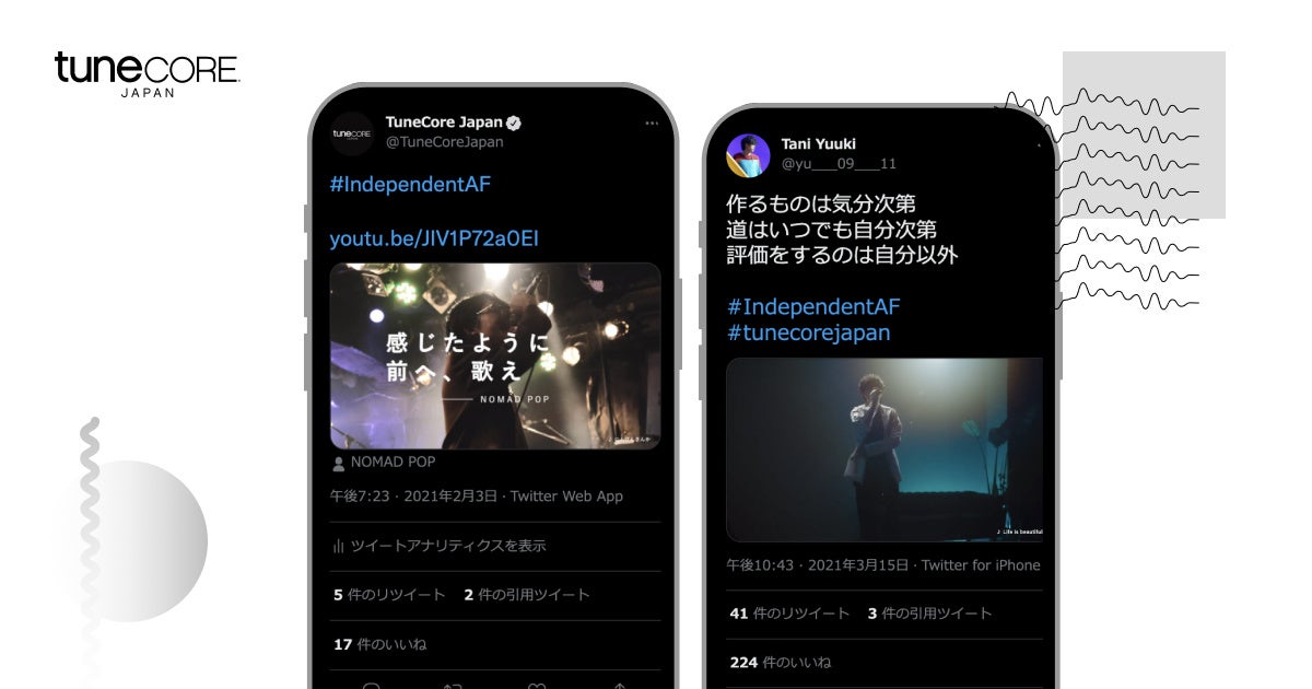 アーティストがそれぞれのゴールに向かって、自由(独立・自立)なスタンスで音楽活動に継続的にチャレンジできる社会環境の形成を目指すTuneCore Japan、今回のキャンペーン「Independent AF 2022」を通してインディペンデントアーティストの活躍をより広く世の中に発信するとともに、アーティストのサポートを促進してまいります。