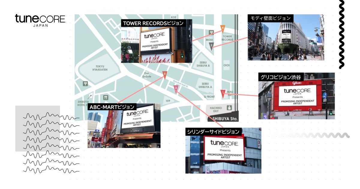 選出されたアーティストは、渋谷の街頭ビジョンでの動画の放映、TuneCore Japan公式アカウントの各メディア(YouTube Shorts, TikTok, Instagram, Facebook 等)での動画展開、TuneCore Japanによる動画広告プロモーション、本キャンペーンCMへの出演、オリジナルグッズ(Tシャツ、ステッカー等)のプレゼント、といった様々な特典を受けることができます。
