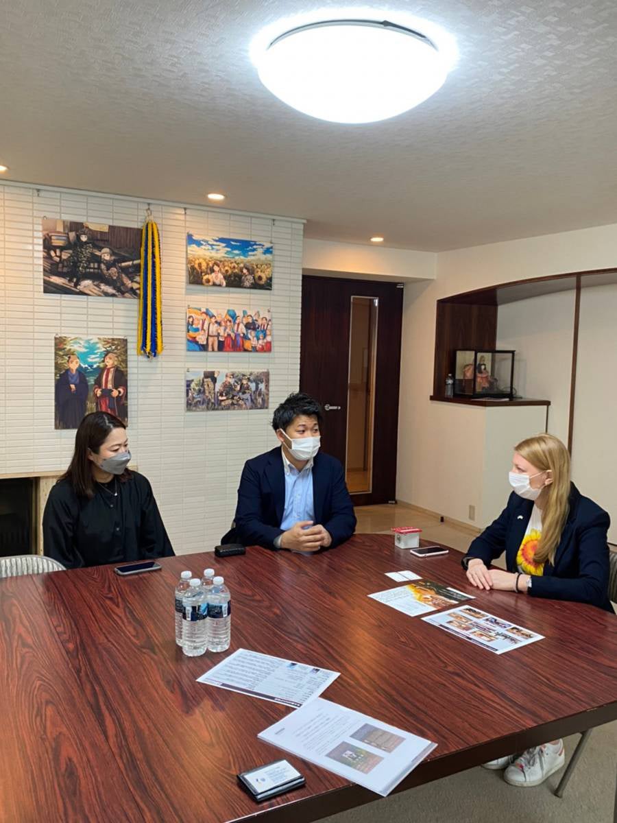 ウクライナ大使館を往訪し、今回のチャリティーコンサートの主旨をご説明、寄付の申し出をさせて頂きました。大使館の方からは、日本を含む世界各国でウクライナへの支援の輪が広がっている事への感謝の言葉、そして日に日に緊張が高まるウクライナの状況をご説明いただきました。ウクライナでは8年続く東部の紛争と、2022年2月からの緊張状態によって、750万人の子どもたちの命と生活が差し迫った脅威にさらされ続けており、この数か月で200万人超の子どもが国を追われ、250万人超が国内避難民となっている状況を、少しでも多くの日本の方々にも広く知って頂きたいとお話がありました。