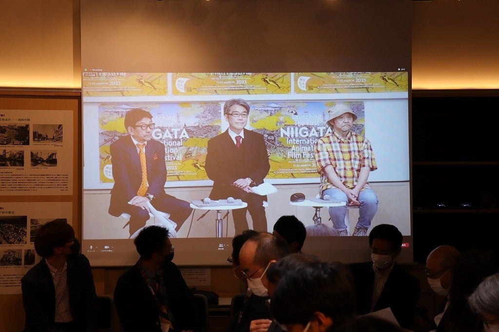 カンヌ、東京、新潟の3都市を結んで同時開催された記者会見では、初開催となる「新潟国際アニメーション映画祭」の目的や意義が語られました。2023年3月17日(金)から22日(水)の6日間にわたって開催される本映画祭は、長編商業アニメーションに特化し、長編アニメ映画のコンペティション部門を持つアジア最大の祭典として、新潟から世界へ向けてアニメーション文化を発信します。