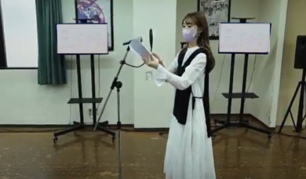 在校生と芹澤さんによるアフレコでは、「さすが、プロの声優さん!」という、キャラクターの感情を上手く表現した演技を披露してくださいました。