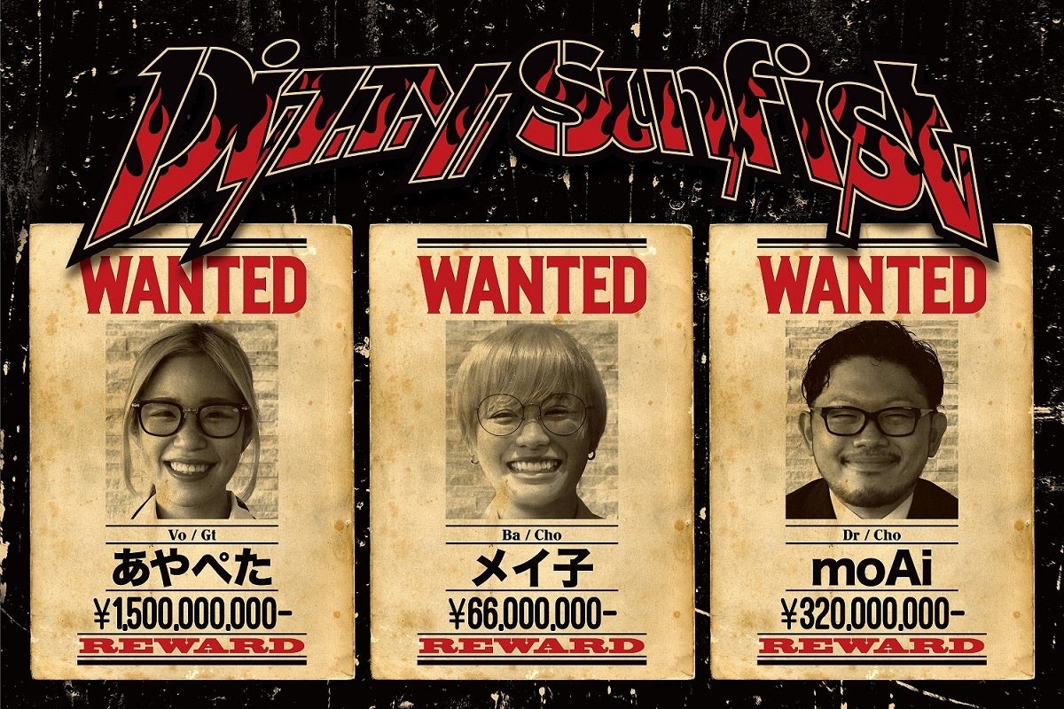 先日、あやぺた(Vo,Gu)、moAi(Dr,Cho)に加え、メイ子(Ba,Cho)の正式加入が発表されたDizzy Sunfistが、メイ子の正式加入後初となるツアー「Dizzy Sunfist “Welcome to MEIKO” TOUR」と、TOUR FINALとして開催するDizzy Sunfistの新自主企画イベント「SUNNY CIRCUS」への合計14組(オープニングアクト含む)の豪華なゲストバンドを発表した。