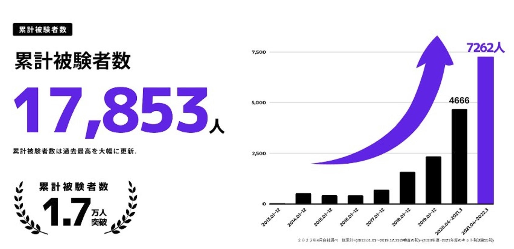 2022年4月時点での DNA FACTOR 総被験者数は17,853人に。