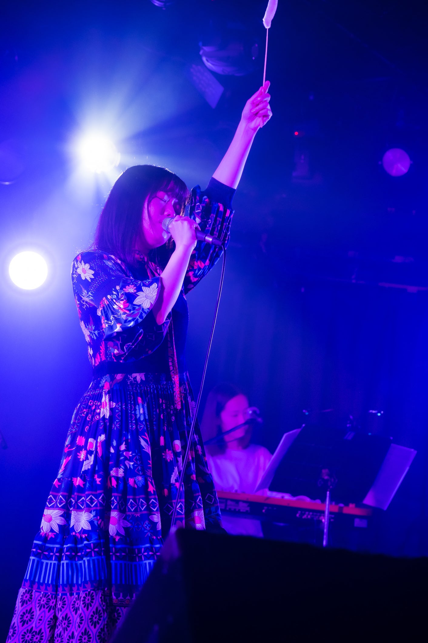 “恋歌日記”第3弾、夏の日の失恋を軽快なモータウンビートと心地良いコーラスワークで吹き飛ばす、ちょっぴり切ないポップチューン「涙バスルーム」を歌い終わると、「悲しくなったときに楽しかったときのことを思い出すことがなかなかできなくて。楽しい瞬間も幻みたいだなと思ってしまうんです。今この瞬間も過ぎていくけど、今ここにいたということを心に刻みたくて、この曲を歌おうと思います」と言って、本編ラストは、“恋歌日記”第4弾「まぼろし」を歌って締めくくる。ノイジーなサウンドの中で真っすぐに響き渡るロングトーンが感動的で、最後は自然とクラップが起こり、この場所で想いをひとつにしたことを、みんなが心に刻んでいく。