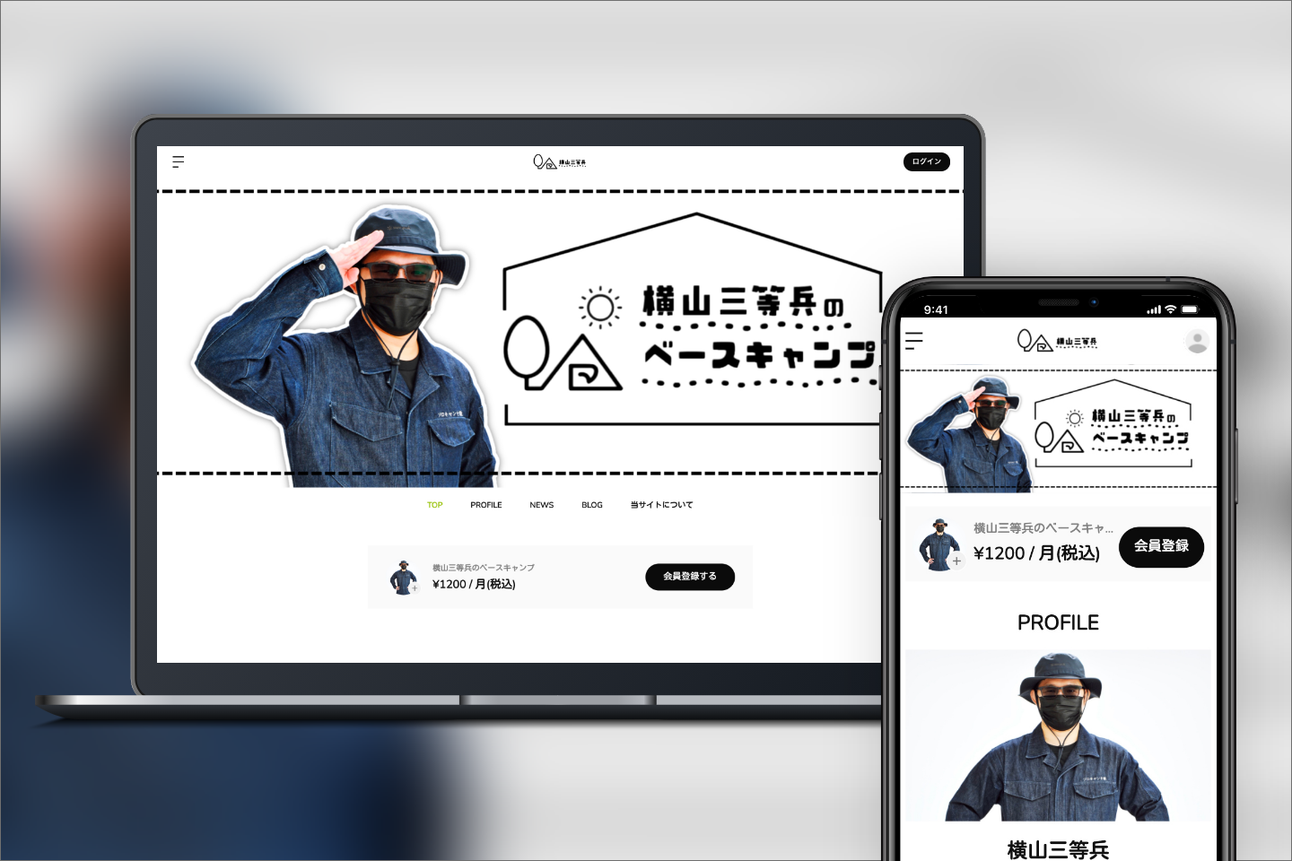 今回オープンするファンクラブでは、横山三等兵をより身近に感じることのできる、トーク動画、オンライン飲み会、チケット制のキャンプイベントなど、盛りだくさんのコンテンツをお楽しみいただけます。当サイトの詳細は、下記URLよりご確認ください。
