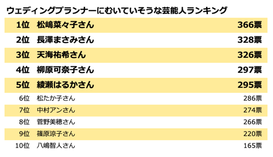 「ウェディングプランナーにむいていそうな芸能人」調査