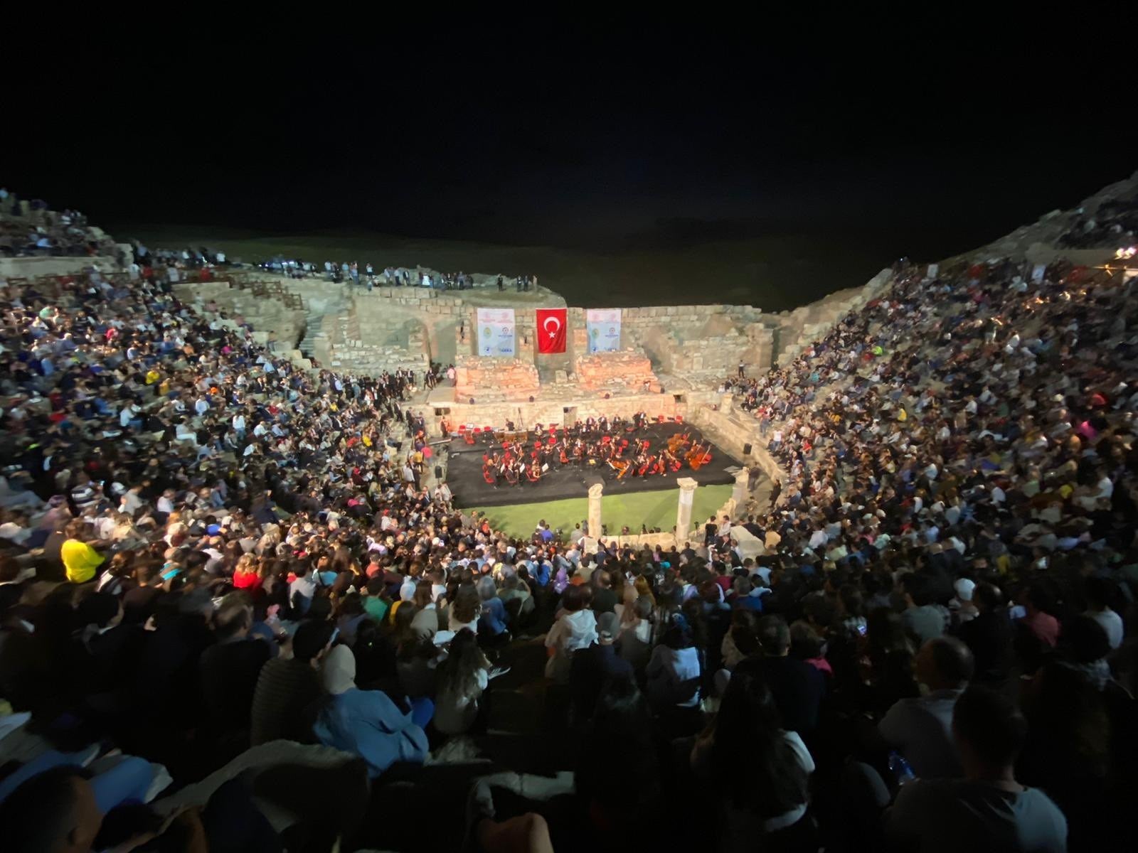トルコ南西部のデニズリ県にある古代都市ラオディキアの前2世紀に建設された西劇場が公演に使われたのは1690年ぶりで、イズミル国立交響楽団による一般公開のオープニングセレモニーには約1万5千人が出席しました。