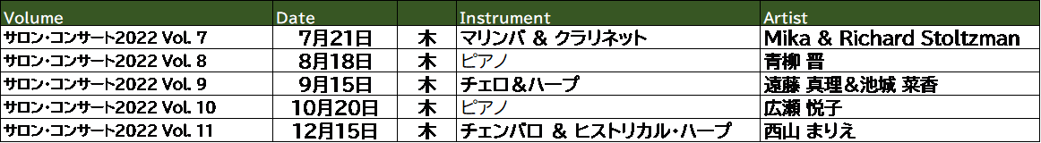 「サロン・コンサート2022(下期)」開催概要