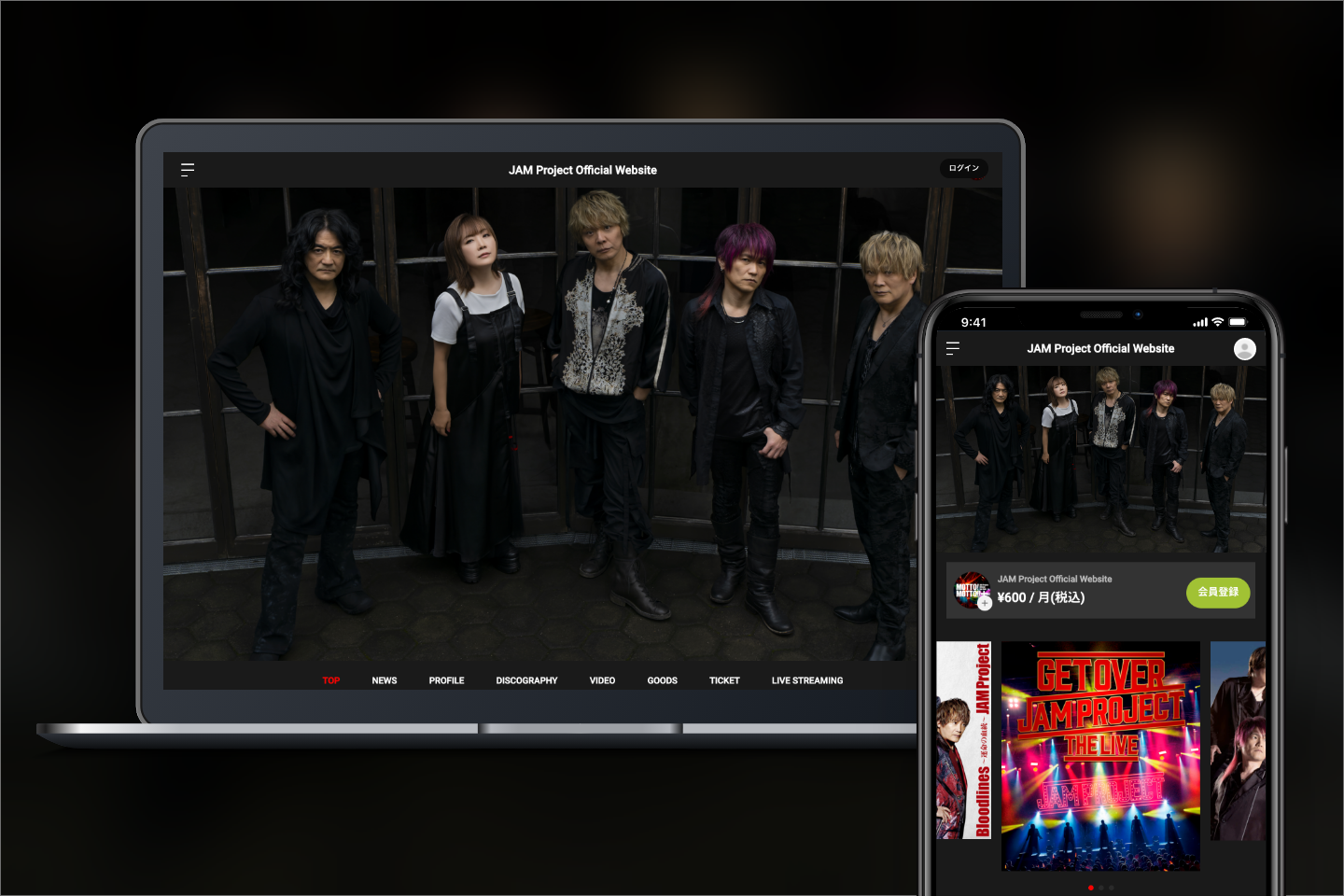 この度リニューアルオープンしたのは、JAM Project Official Fan Club 「MOTTO! MOTTO!! +」です。当サイトの有料会員にご登録いただくと、視聴者参加型のライブストリーミングやバースデーメッセージ機能、チケットの先行販売などのコンテンツをお楽しみいただけます。