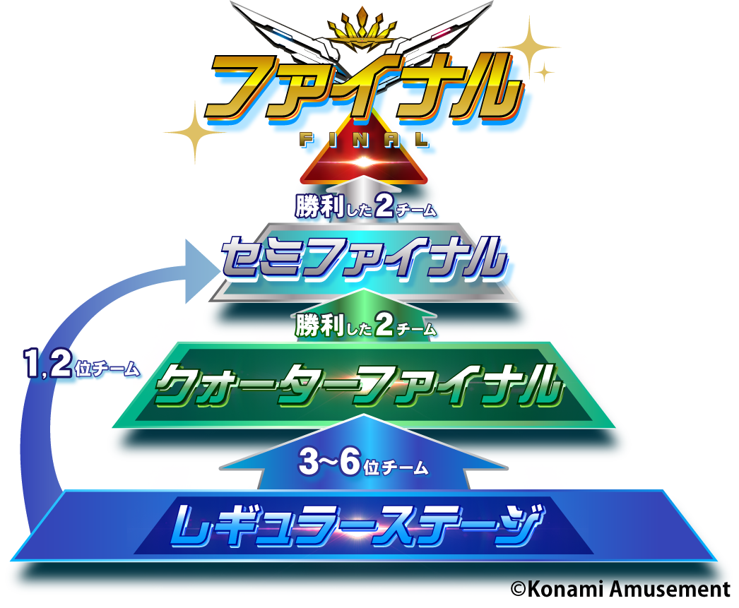 本年度は参加企業が8社になったことにより、決勝トーナメント制を導入。レギュラーステージは、参加チーム8社が総当たり戦で28試合を行います。クォーターファイナルでは、レギュラーステージを勝ち上がった6チームのうち下位4チームが1試合ずつトーナメント戦を行い、勝者がセミファイナルに進出します。セミファイナルでは、レギュラーステージの上位2チームとクォーターファイナル勝者が対決し、勝ち上がった2チームがファイナルに進出します。