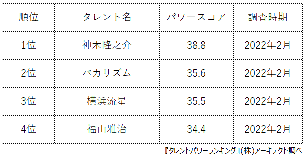 タレントパワーランキング担当:松岡
