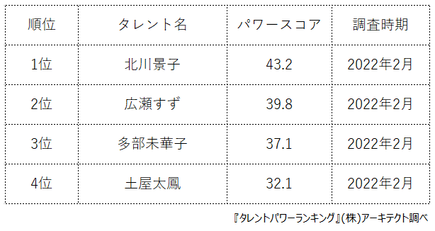 タレントパワーランキングを詳しく知りたい方はこちら↓