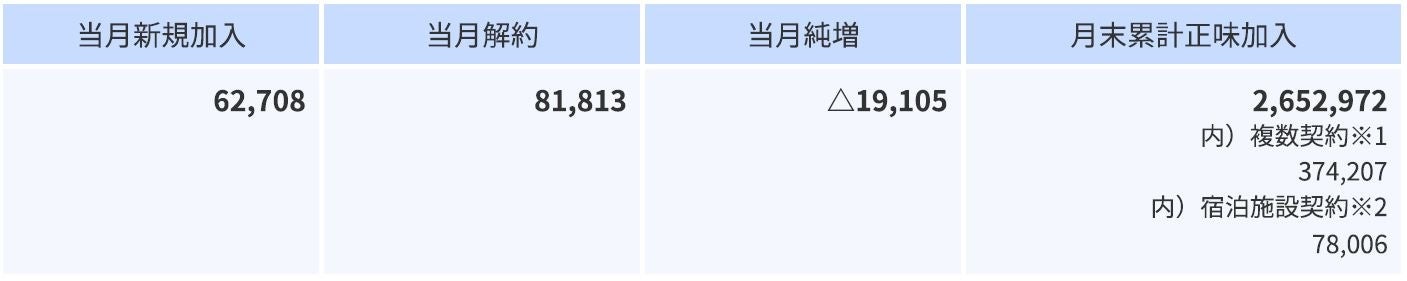 ※2:宿泊施設の客室で視聴するための宿泊施設事業者との契約については、視聴料金を個別に定めており、当該宿泊施設における契約客室の累計正味加入件(室)数は、月末累計正味加入件数に含めております。