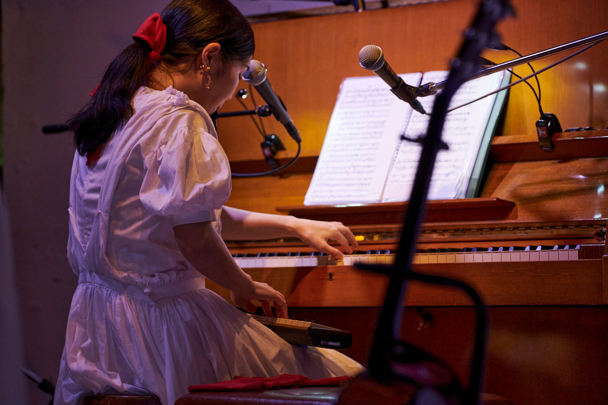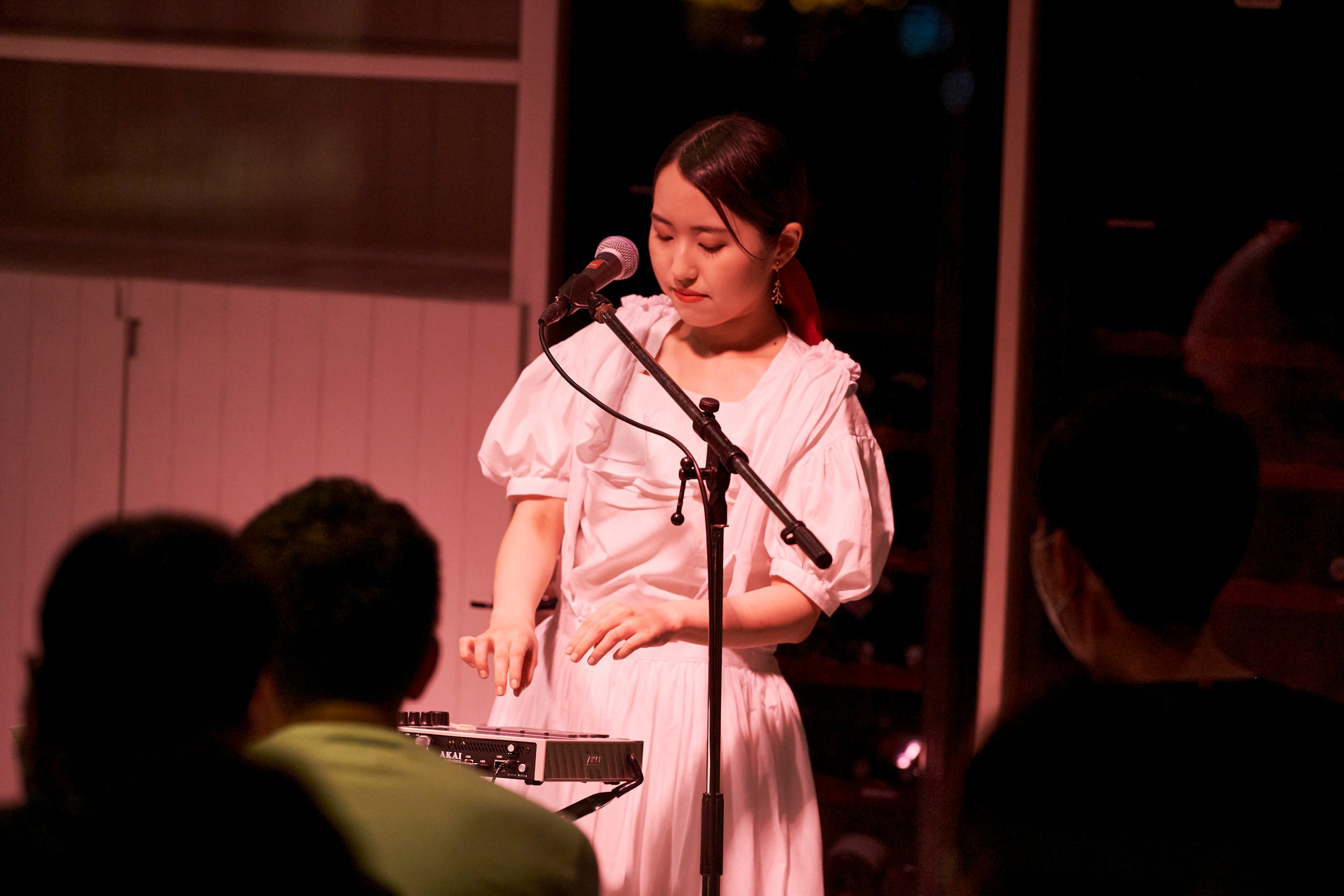 数曲を終えてMonaが、「今日はお越しくださってありがとうございます。こんなに客席が近いライヴは初めてです。しかも皆さんに背を向けて演奏するのも初めてで……今日は逆Kitriでお送りします(笑)」と挨拶。実はこの日、アップライトピアノの位置の都合上、観客は演奏する2人の背中を見守るような形になっていたのだ。そんなレアな光景が広がる中、ライヴの前半は、主にMonaがピアノと鍵盤ハーモニカ、HinaがアコースティックギターとMPC(註:サンプラー、シーケンサー、そしてパッドコントローラーが一体となった電子機器)を担当し、ノスタルジックなものや、どこかメランコリックな楽曲を中心に奏でていく。中でも印象的だったのは、「Bitter」の収録曲である「悲しみの秒針」だ。ピアノから紡がれる哀愁の漂うメロディに、Hinaが巧みに操るMPCから生み出されたリズムトラックが合わさると、2人だけで作り上げたとは思えない厚みのあるサウンドが響き渡る。また、タイトルにかけて、時計の秒針の音も取り入れられていたのだが、こういった楽曲の再現性や遊び心の感じる演出は今までの彼女たちのライヴにはなかった。曲の世界にあわせて、ピアノだけに限らず、さまざまな要素を取り入れ自由に表現していこう。そんな2人の前向きな思いを感じた瞬間だった。