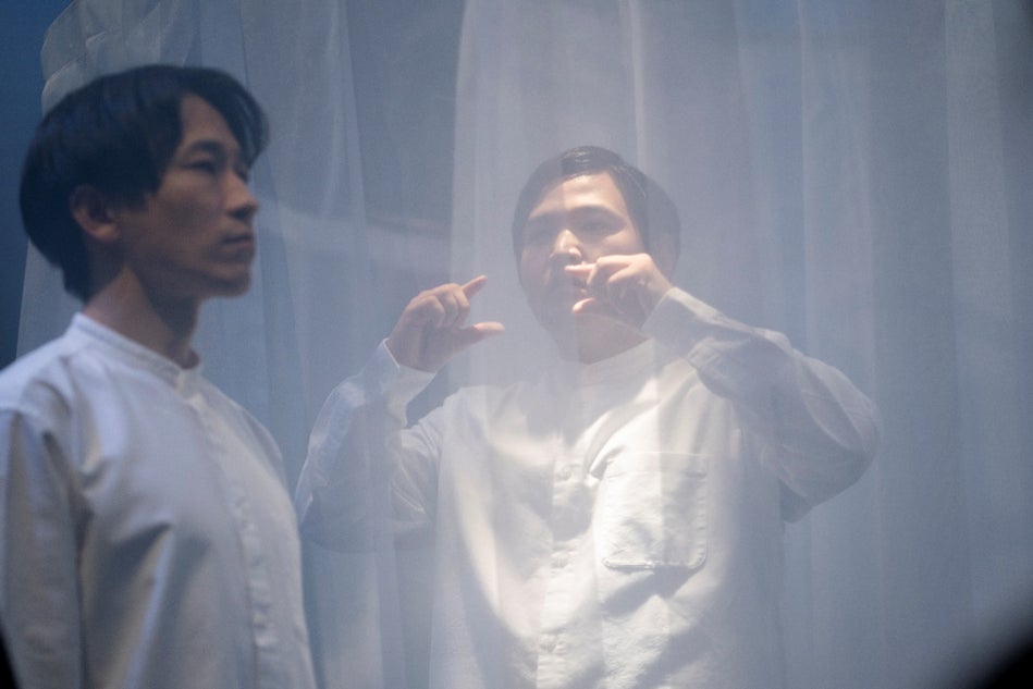 『夢の男』は、ろう者と聴者のコラボレーションによって、現実の世界ではなく、夢の中の抽象的な世界の特徴や感覚などを描いた点が見どころです。ろう者と聴者が各々の専門性をもとに役割を分担し、日本手話と日本語という異なる二つの言語と文化が交じり合った会話の中で、視覚言語×身体表現を丁寧に時間をかけてつくり上げました。とりわけ、ろう者と聴者の文化の間の情景の想像をどう掻き立てるかに力を入れ、男二人の目の動きといった点などにもこだわりながら、これまでにない世界観をつくることに挑戦しました。夢の世界と現実との境界にあるモノを、観る人それぞれの多様な視点で体感いただきたいと思います。
