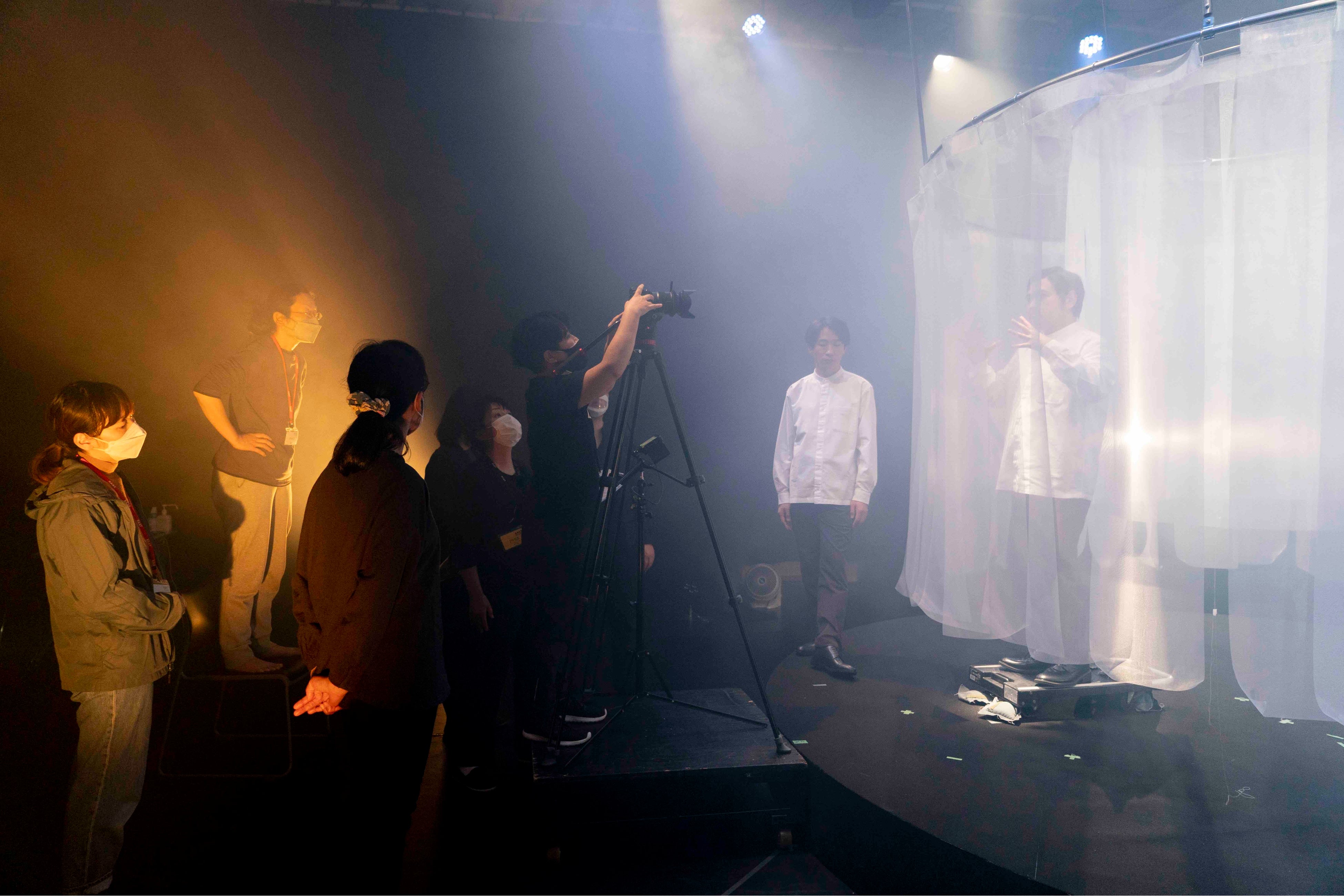 『夢の男』は、ろう者と聴者のコラボレーションによって、現実の世界ではなく、夢の中の抽象的な世界の特徴や感覚などを描いた点が見どころです。ろう者と聴者が各々の専門性をもとに役割を分担し、日本手話と日本語という異なる二つの言語と文化が交じり合った会話の中で、視覚言語×身体表現を丁寧に時間をかけてつくり上げました。とりわけ、ろう者と聴者の文化の間の情景の想像をどう掻き立てるかに力を入れ、男二人の目の動きといった点などにもこだわりながら、これまでにない世界観をつくることに挑戦しました。夢の世界と現実との境界にあるモノを、観る人それぞれの多様な視点で体感いただきたいと思います。