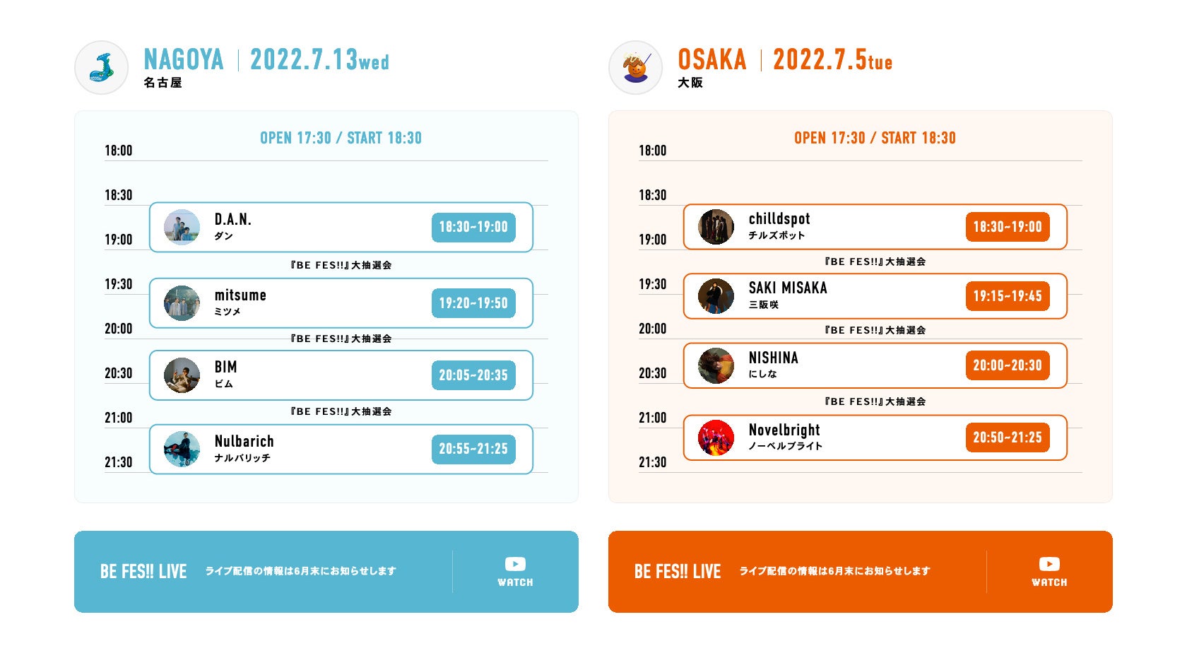 (『BE FES!!』ライブ開演時間から店舗の営業終了時間まで)