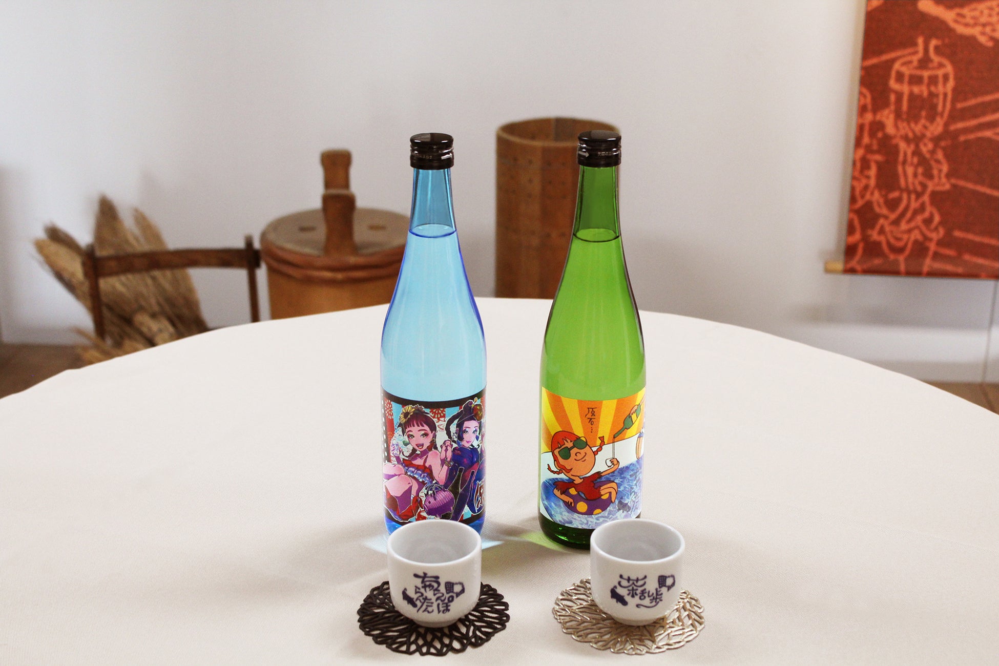 このイラストが夏酒『原石 純米大吟醸 愛山』のラベルを飾り、チャラン・ポ・ランタン 小春さんによる描きおろしイラストを用いた夏酒『原石 純米大吟醸 秋田酒こまち』とセットで販売されます。