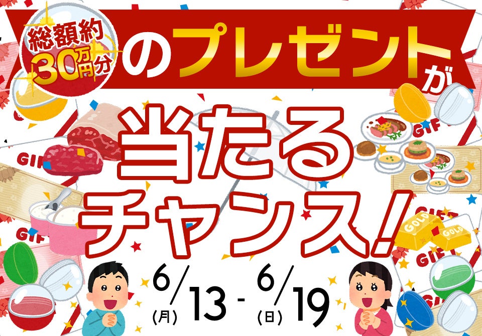 - 6月13日(月)~19日(日)総額約30万円分のプレゼントが当たるチャンス!