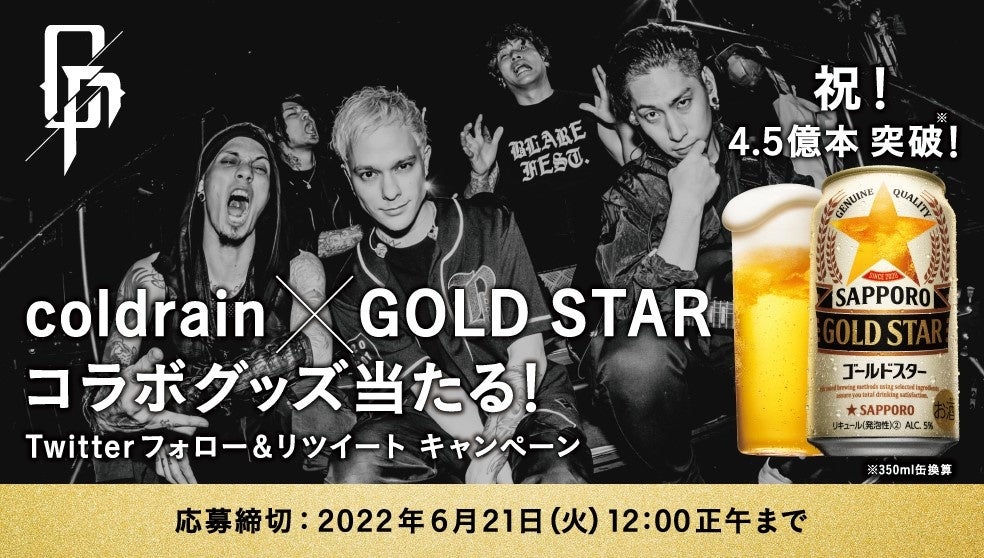 6月8日17:00より「サッポロ GOLD STAR『coldrain×GOLD STARコラボグッズ当たるTwitterフォロー&リツイートキャンペーン』」を実施します。