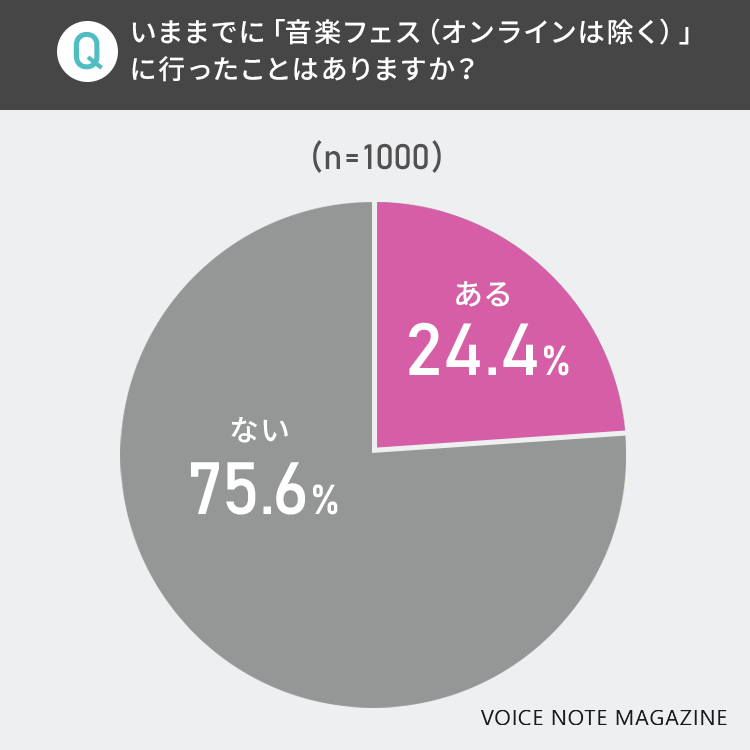 24.4%の方は、いままでにオンライン開催以外の音楽フェスに行ったことが「ある」ようです。