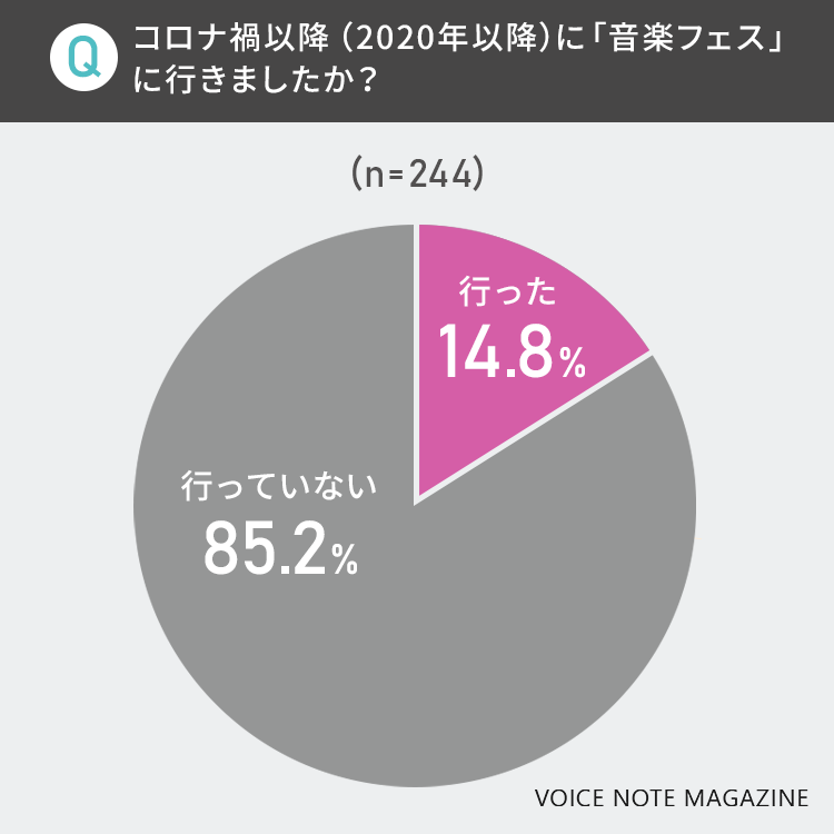 85.2%の方は、コロナ禍以降は音楽フェスに「行っていない」と回答しました。