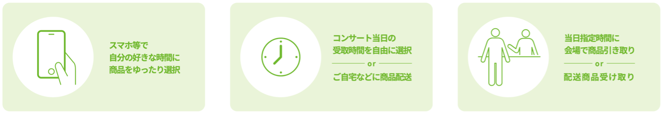 コンサート・イベント物販現場の最前線から生まれた本サービスにより、グッズの販売所などの混雑しやすい環境でも、お客様の待ち時間を減らして密を避けるソリューションを提供し、物販運営の効率化に貢献いたします。