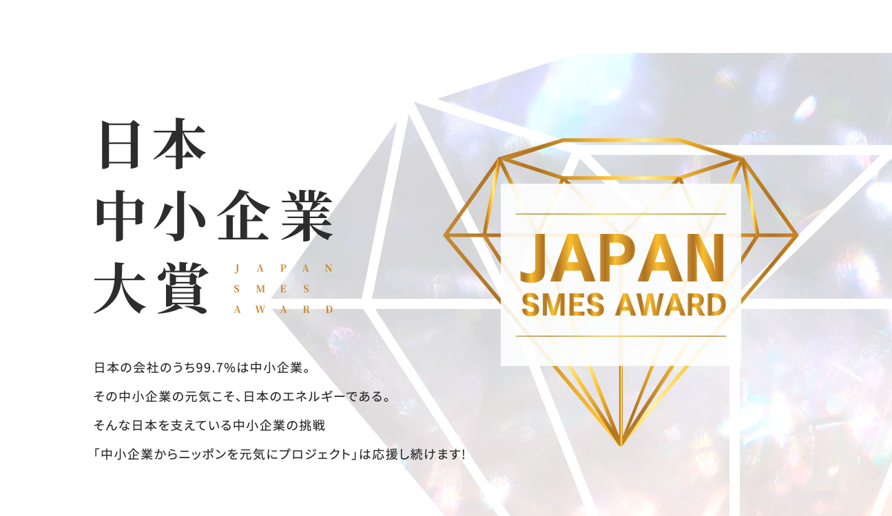 『 日本中小企業大賞』では、日本の元気に繋がる参画企業や社員の努力・実績にフォーカスを当て、各受賞項目に沿って表彰を行います。各企業の取り組みを情報発信することで、インナーモチベーションの向上、外部へのPR力アップ、ご参画企業の更なる成長のバックアップを目的としております。