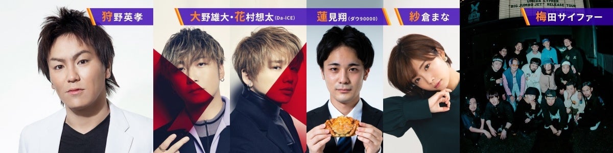 大野雄大/花村想太(Da-iCE)、蓮見翔(ダウ90000)・紗倉まな、梅田サイファー