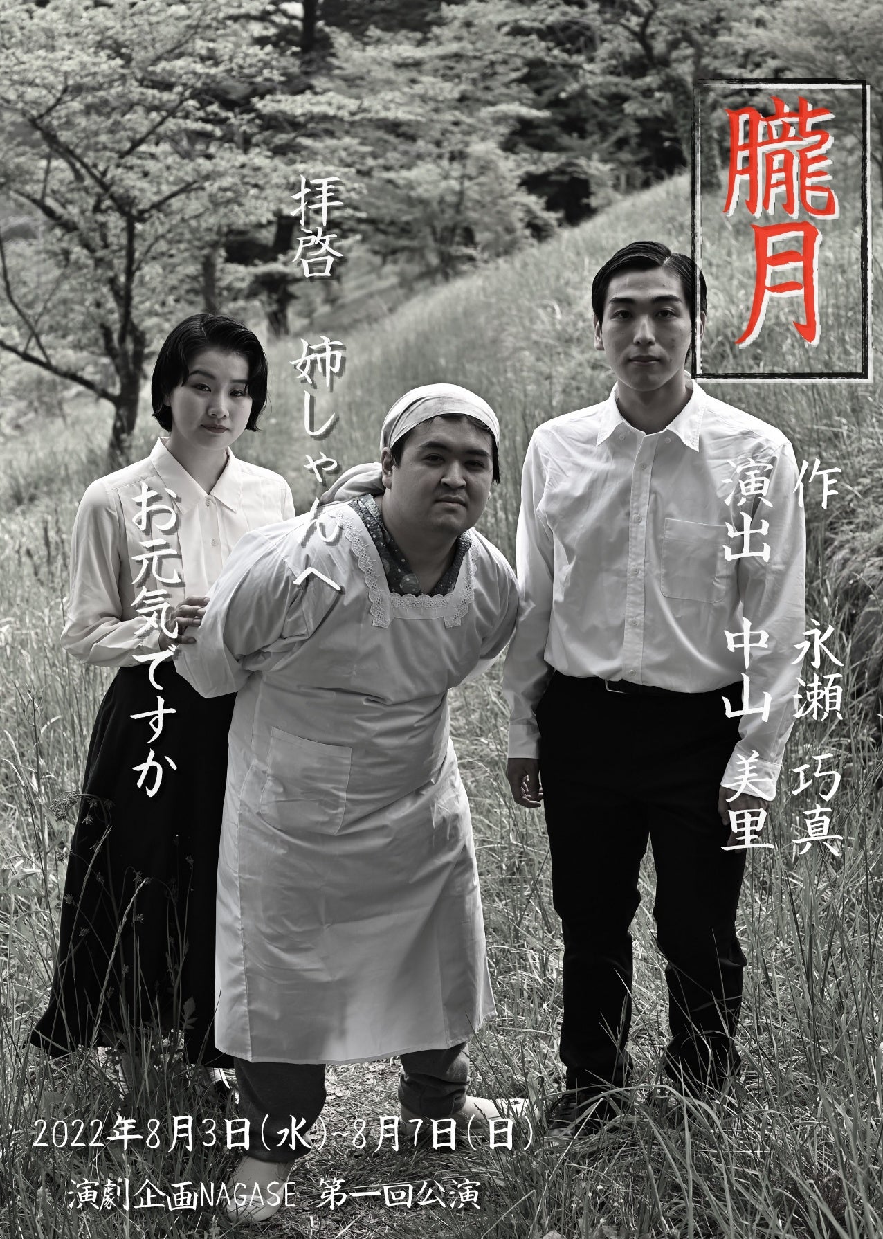 演劇企画NAGASE 第一回公演 『朧月』が2022年8月3日(水)~8月7日(日)にシアター・バビロンの流れのほとりにて(東京都北区)にて上演されます。チケットはカンフェティ(運営:ロングランプランニング株式会社、東京都新宿区、代表取締役:榑松 ⼤剛)にて発売中です。