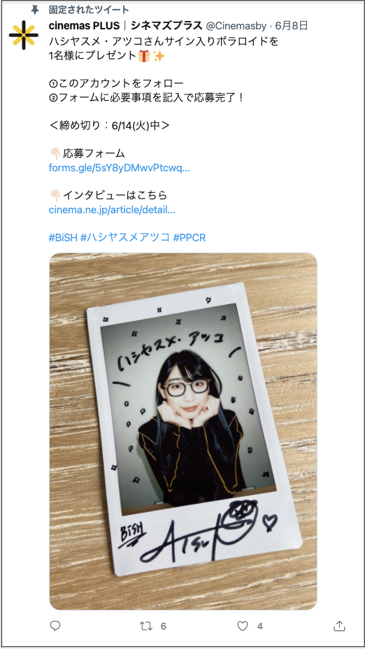 ①cinemas PLUS公式Twitter( https://twitter.com/Cinemasby )をフォロー