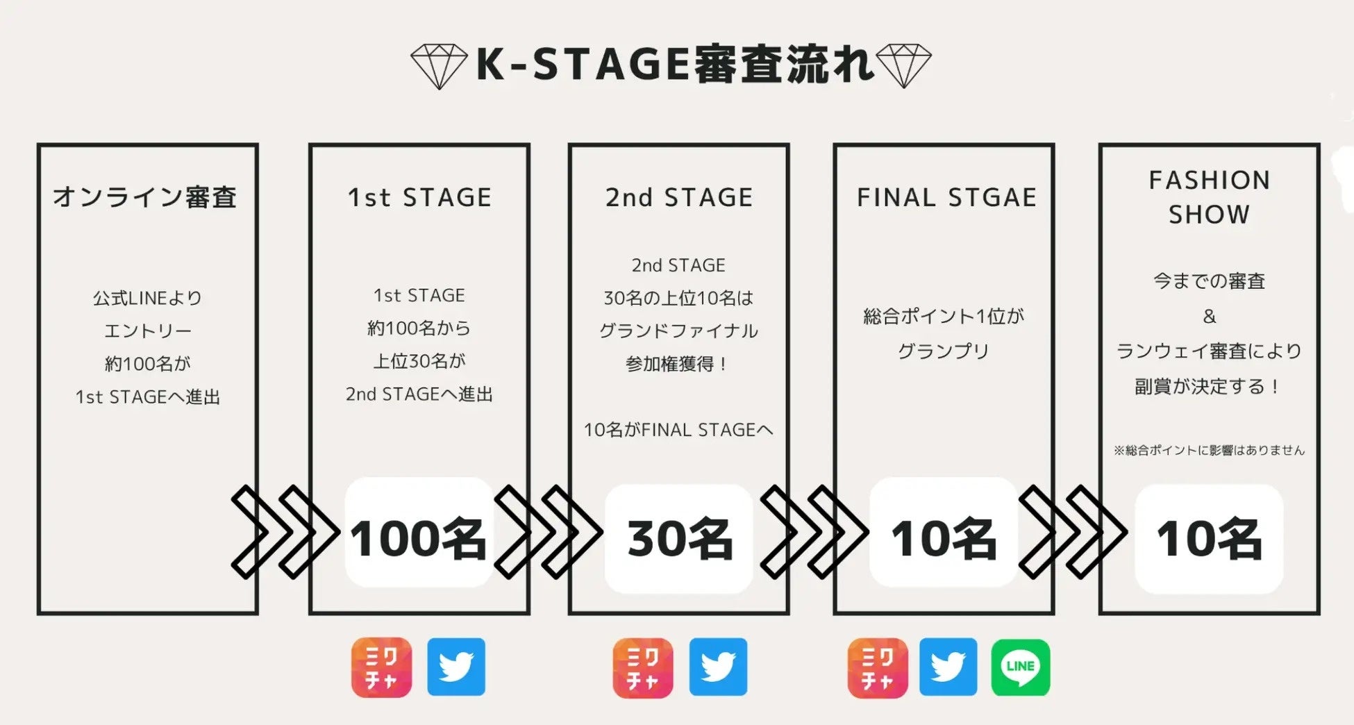 『K-STAGE』は全国の韓国好きな16歳~35歳の男女を対象に「夢へ一歩踏み出すチャンス」を提供するために「韓国×ファッションショー」をテーマに企画した、韓国好きが集まるモデル発掘コンテスト。