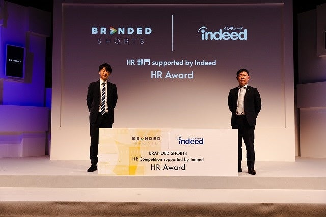 プレゼンターにはIndeed Japan株式会社マーケティングディレクターの水島剛さん、受賞した株式会社ニチイ学館からは人財開発部の⼤越健介さんが登壇。「介護職のリーディングカンパニーとして、業界のイメージを変えたいという思いで取り組みました。受賞したこの作品を通して、介護の良さ、優しさを伝えたい。」とコメント。BRANDED SHORTSの52点の候補作品から、HR、人事、採用の視点で魅力的だった作品を映画祭実行委員会が選定。昨年のHRアワード新設を経てHR部門として拡充を図るBRANDED SHORTSをサポートする背景として、Indeed Japanが推進する、企業が自らのミッションやパーパス、カルチャーについて能動的に発信していくことが有力な人材採用につながるとする「オウンドメディアリクルーティング」について説明。採用のための企業情報発信の新たな手法としてブランデッドムービーの有効性に期待を寄せていることを話し、企業の人事担当者に向けて「企業の魅力は必ずしも大掛かりである必要はなく、リアリティがある方が心に響くと思います。眠っている魅力を掘り出して、求職者の人々に伝えてほしい。」と応援のメッセージを贈りました。