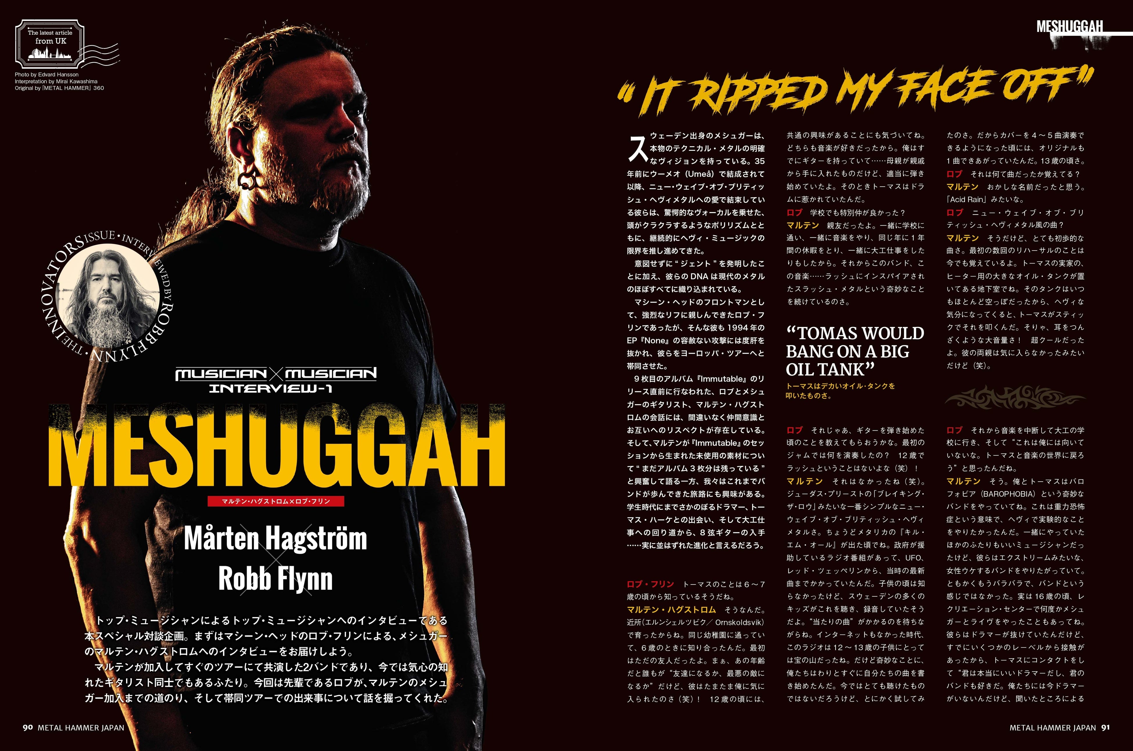 ミュージシャン自身がインタビュアーとなり、交流のあるミュージシャンから話を聞く本企画。まずはマシーン・ヘッドのロブ・フリンが、若き時代にツアーのサポートを務めたメシュガーのマルテン・ハグストロムとトーク・セッション。バンド加入から一緒に回ったツアーまで、旧知の仲だからこそ語り合える話題は興味深いものばかり!