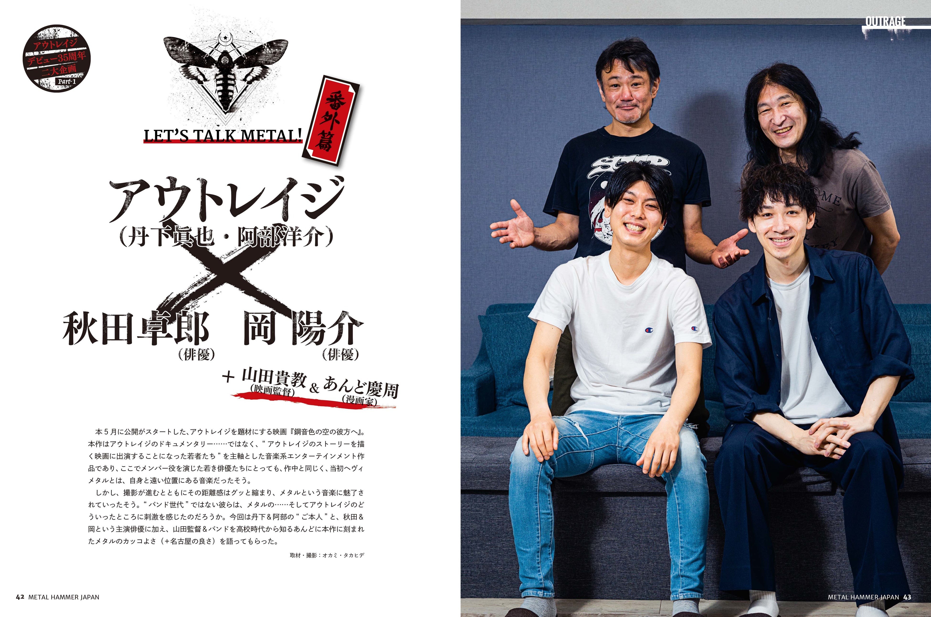 今年デビュー35周年を迎え、“オリジナル・ストーリー映画”、“オーケストラとの共演”と、これまでにない試みを見せたアウトレイジを二大特集でピックアップ! 前半は<メンバー×俳優×監督×漫画家>での座談会で、映画を主軸にメタル、青春、そして名古屋について語り明かす! 後半は共演ライヴでのオーケストラを指揮した柴田祥氏に、クラシック側からの見解を聞く。
